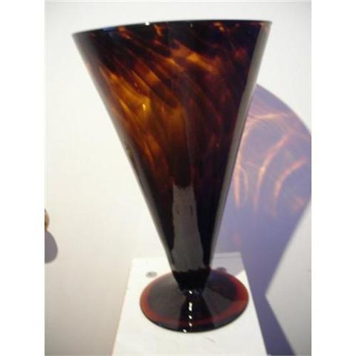 Brown toned goblet vase with tiger?s eye fading and thick supporting rim. 1960?s. 13? high, 8? wide. $95.00