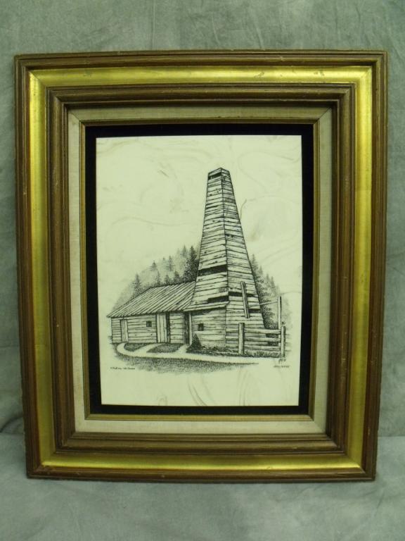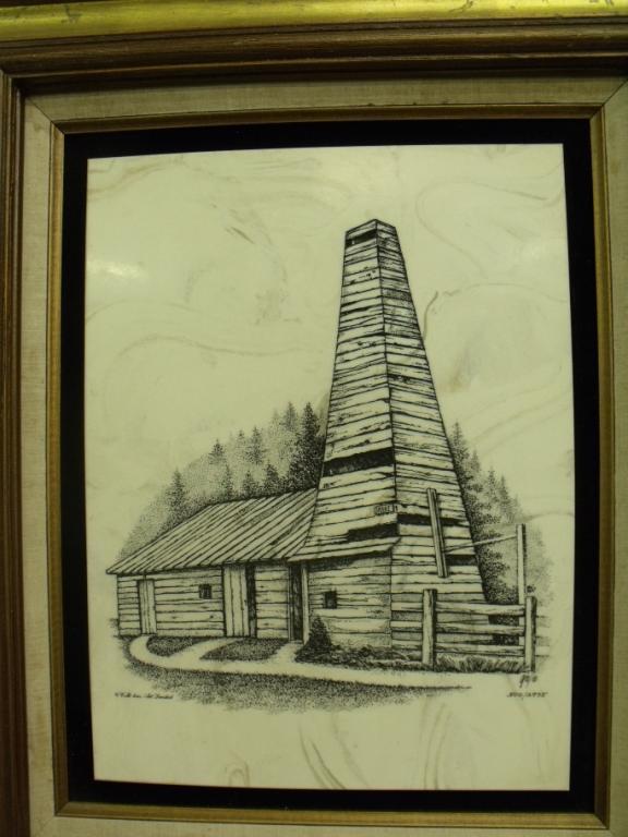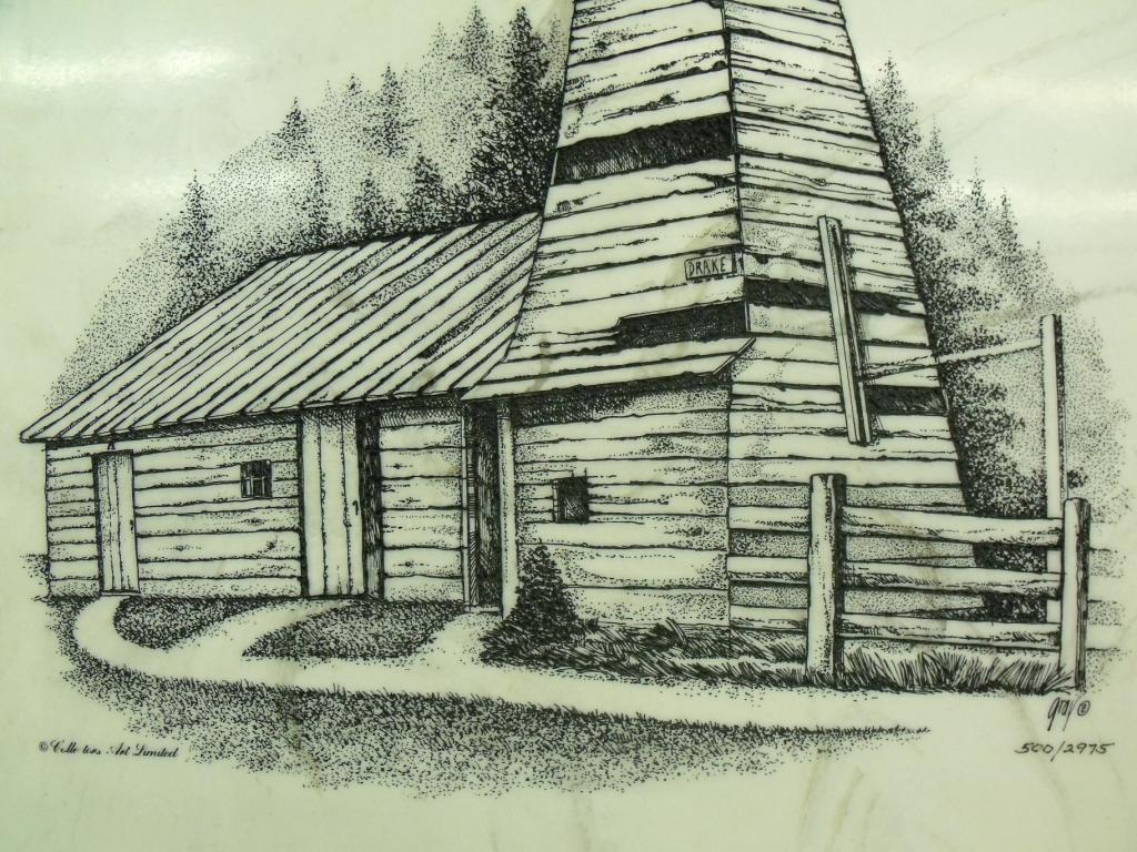 Rare David Frederick Gray oil rig tile etching signed and numbered #500 of 2975, 22"x27" in good condition