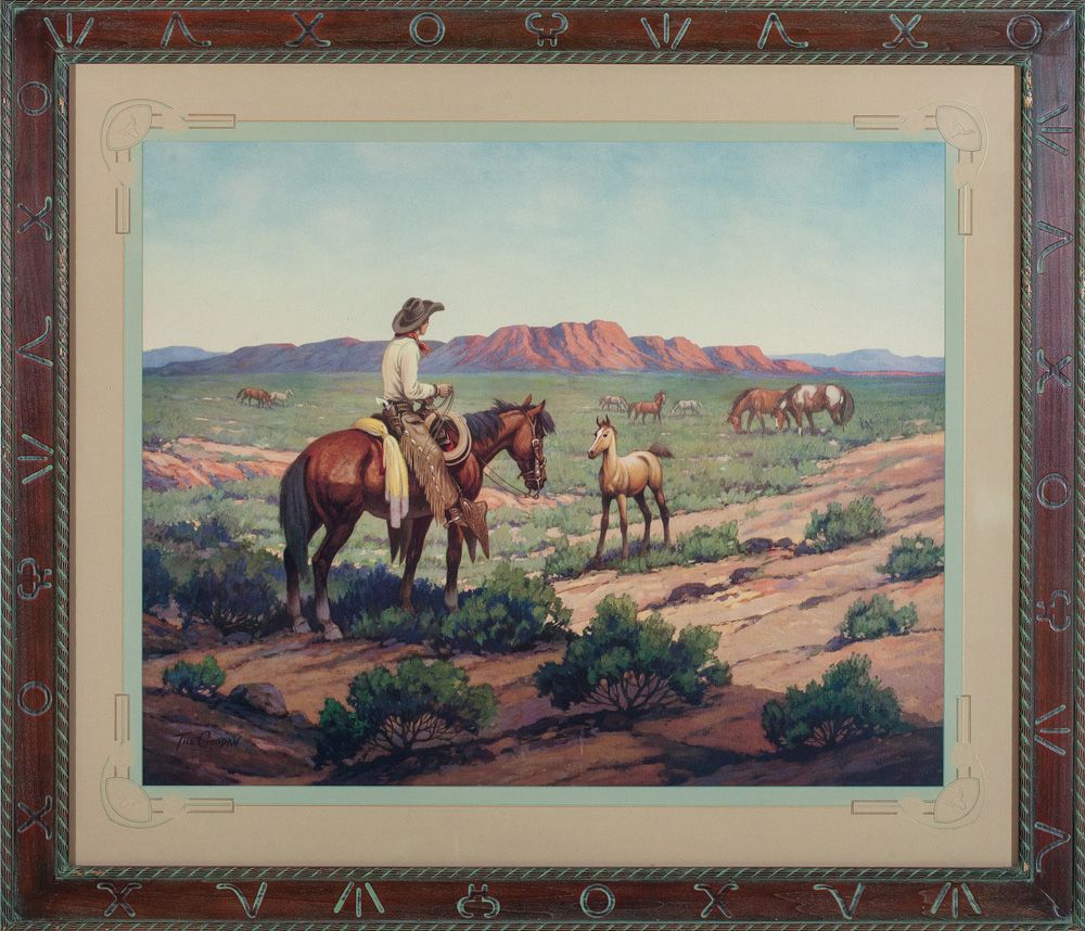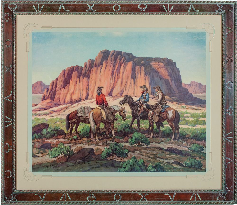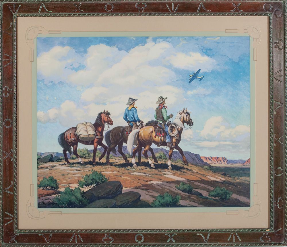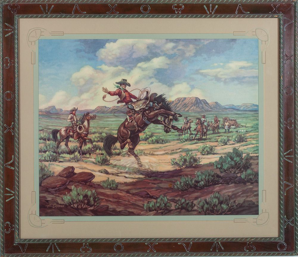 Set of 6 “Westward Ho” Vintage Lithographs by Till Goodan. Created in 1939, framed by Collier