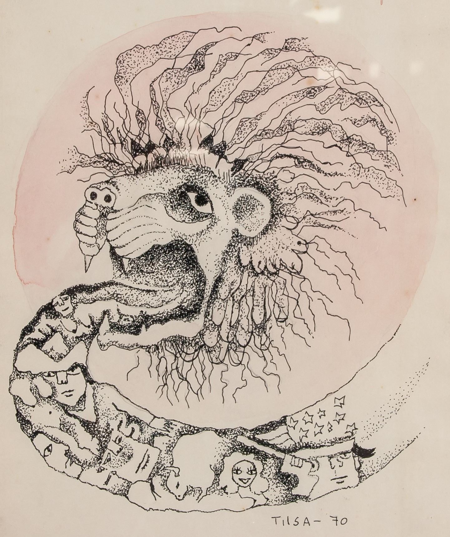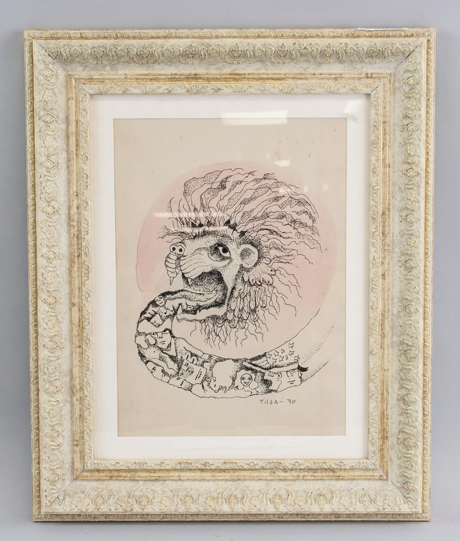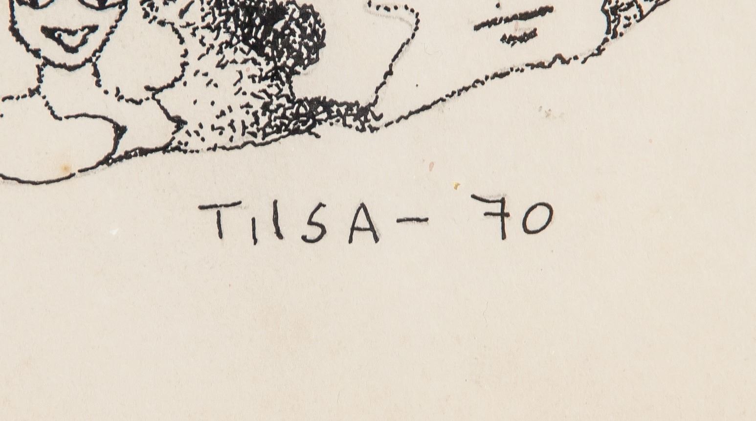 Ink on paper framed. Signed and attr. Tilsa Tsuchiya (Peru, 1928-1984). Tilsa Tsuchiya Castillo was a contemporary Peruvian printmaker and painter considered one of the greatest exemplars of Peruvian modern painting. PROVENANCE: Upper New York Estate