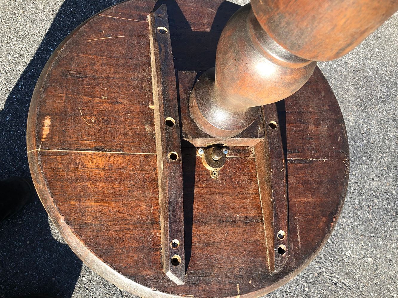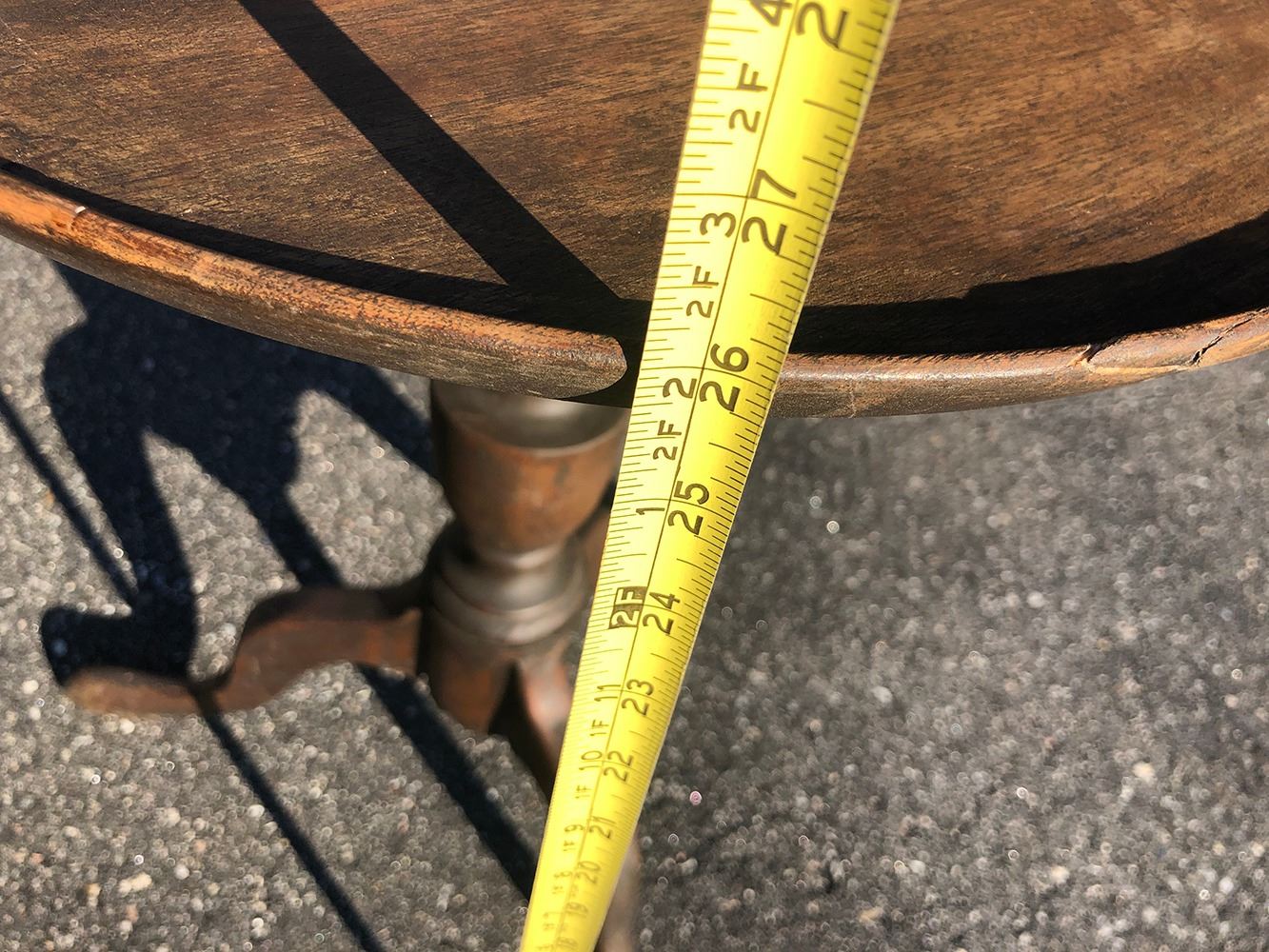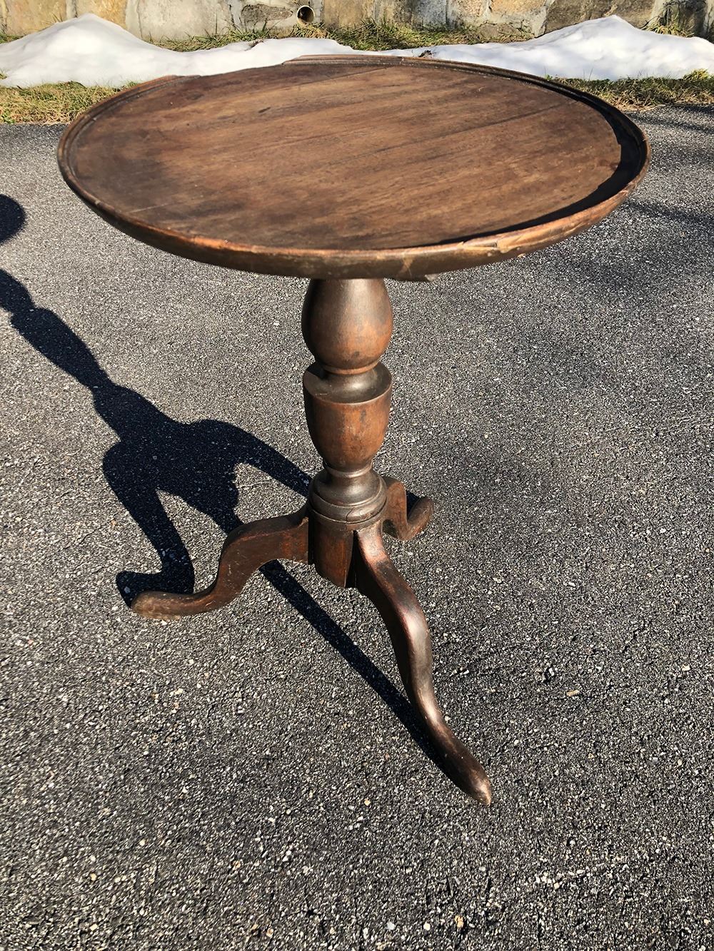 Vintage tilt top candle stand. Top measures approx 18 inches wide x 26 inches tall.