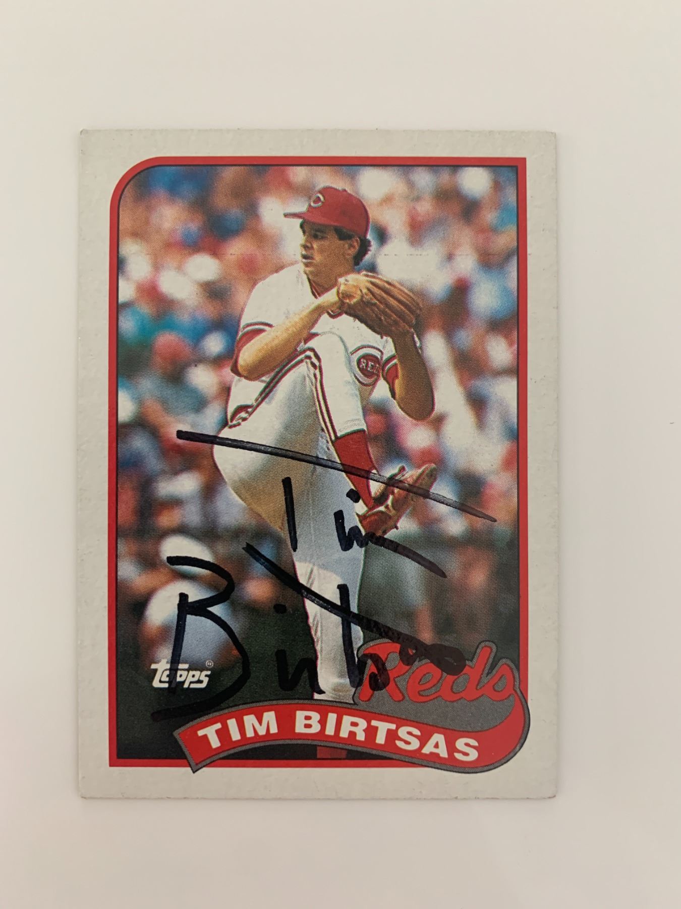 Tim Birtsas signed baseball card. Topps 1989. 2x3 inches