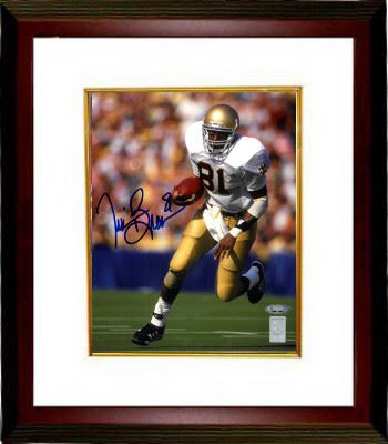Tim Brown made the College Football All-America Team twice and won the 1987 Heisman Trophy, becoming the first wide receiver ever to win the award. Tim Brown has hand autographed this Notre Dame 8x10 Photo. Tri-Star & Brown Holograms and Certificate of Authenticity. Custom White Mat and Premium Mahogany Frame as shown.