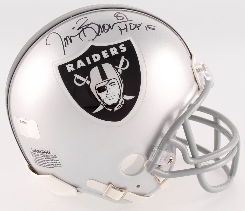 Riddell Raiders mini-helmet. Hand-signed and inscribed in black felt tip pen by Tim Brown (HOF).Â