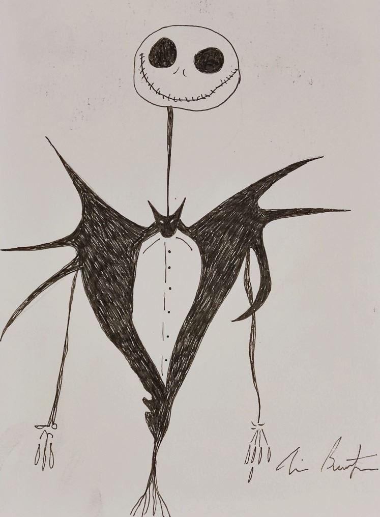 Sketch of Jack Skellington from 'The Nightmare before Christmas'.