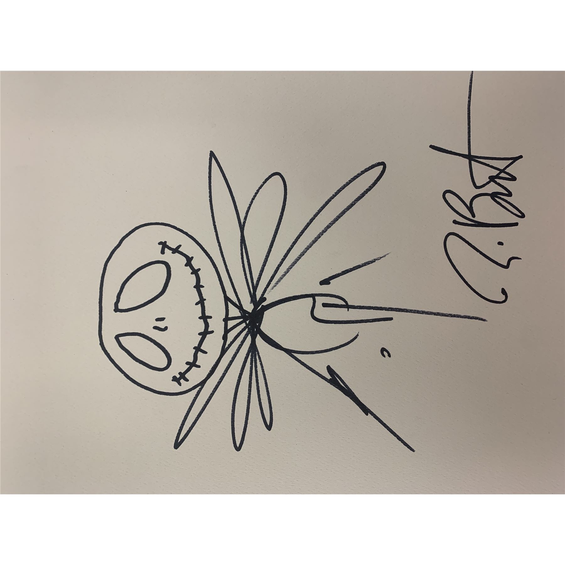 Tim Burton hand drawn Jack Skellington signed sketch. 7.5 x 11 inches