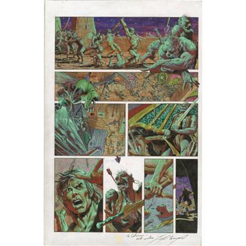 <B>Tim Conrad - Epic Illustrated #5, page 91 Original Art (Marvel, 1981).</B></I> Artist Tim Conrad and writer Roy Thomas adapt Robert E. Howard’s classic tale "Almuric," in this page from the story, "Conclusion." Rendered in mixed media on heavy board, the art has an image area measuring 11.5" x 17.5", and is in Excellent condition. Signed and inscribed by Tim Conrad at the bottom right.<BR><BR><b>Shipping:</b> Flat Material, Small (<a target="_blank" href="http://www.heritageauctions.com/common/shipping.php">view shipping information</a>)