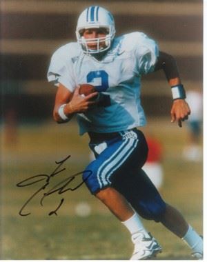 Tim Couch's career totals at Kentucky included completing 795 of 1,184 passes (.671 completion rate) for 8,435 yards (including 4,275 passing yards during the 1998 season alone) and 74 touchdowns. He left Kentucky holding NCAA records for most completions in a season (400 in 1998), most completions in a two-year period (763 in 1997-1998), most completions per game in a two-year period (34.7, 1997-1998) and career completion percentage (67.1%). His 1998 records of 4,151 offensive yards in a season, 377.4 offensive yards per game and 4,275 passing yards, stood as Southeastern Conference records for years after his departure. Tim Couch has hand autographed this Kentucky Wildcats 8x10 Color Photo. Certificate of Authenticity from Athlon Sports.