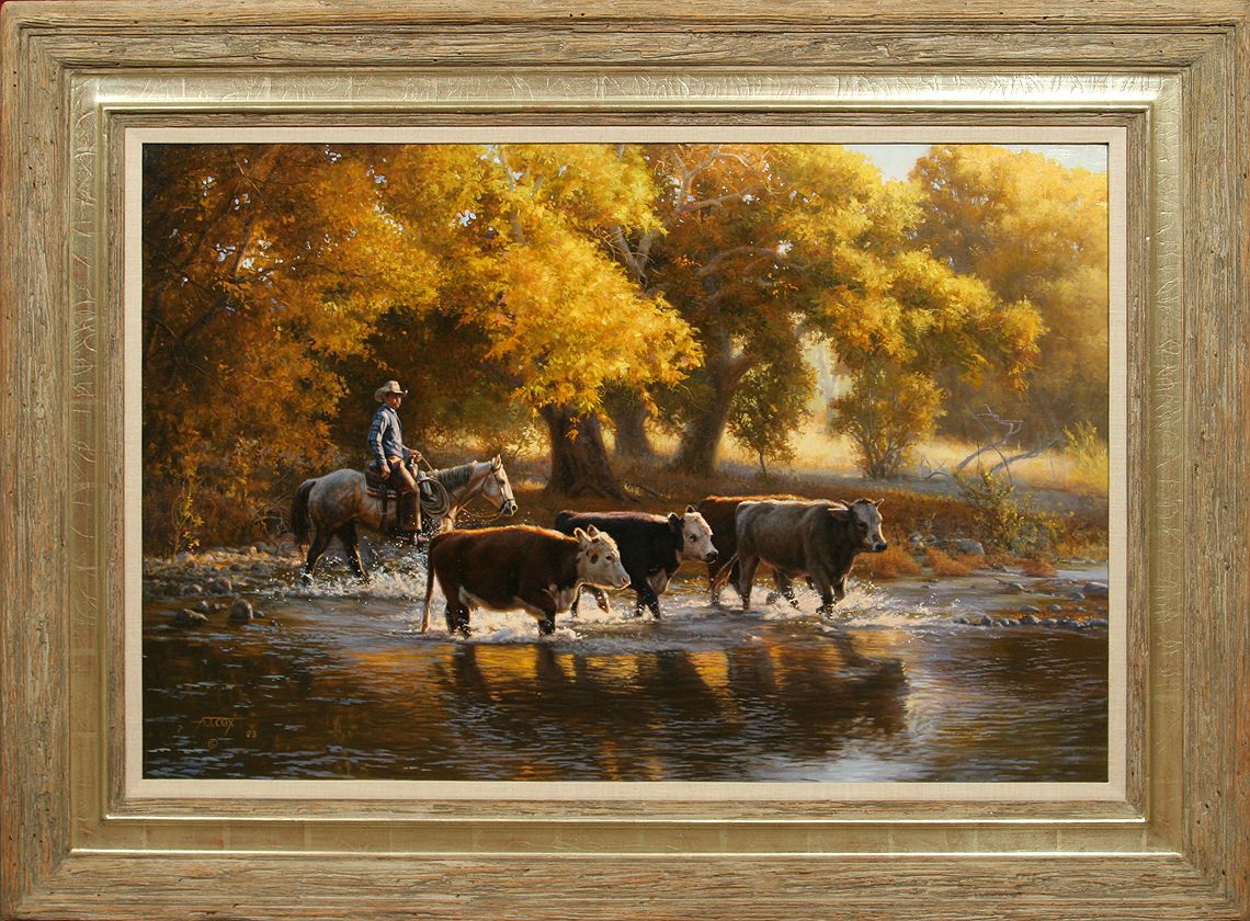 Tim Cox (b. 1957) CA. Gathering The Creek. 24" x 36" oil on board. Signed lower left: A. T. Cox © 83. (est. $25,000-35,000). CONDITION REPORTS: www.auctioninsantafe.com/docs/cr2012.pdf