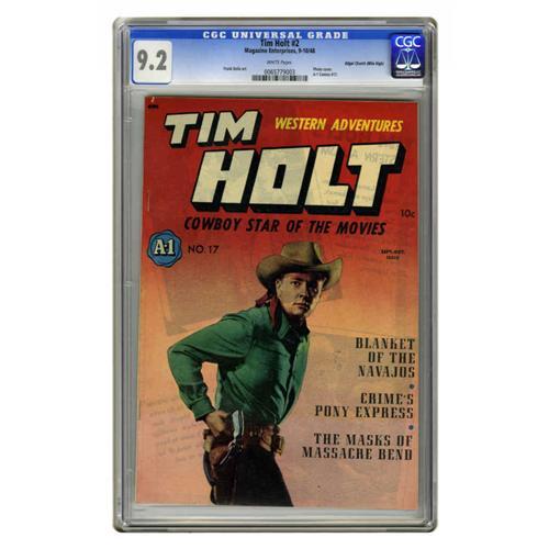 <B>Tim Holt #2 Mile High pedigree (Magazine Enterprises, 1948) CGC NM- 9.2 White pages.</B></I> Also known as <B>A-1 Comics</B></I> #17, this issue has a photo cover and Frank Bolle art. No copy tops this one in CGC's census to date. Overstreet 2005 NM- 9.2 value = $420. CGC census 12/05: 1 in 9.2, none higher.
