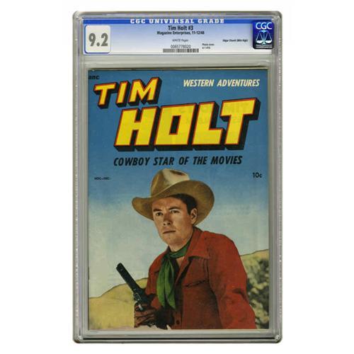 <B>Tim Holt #3 Mile High pedigree (Magazine Enterprises, 1948) CGC NM- 9.2 White pages.</B></I> Also known as <B>A-1 Comics</B></I> #19, this issue has photo front and back covers. This is CGC's highest-graded copy as of this writing. Overstreet 2005 NM- 9.2 value = $320. CGC census 12/05: 1 in 9.2, none higher.