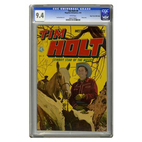 <B>Tim Holt #8 Mile High pedigree (Magazine Enterprises, 1949) CGC NM 9.4 White pages.</B></I> Frank Bolle and Fred Guardineer contributed interior art to this issue. Overstreet 2005 NM- 9.2 value = $190. CGC census 12/05: 1 in 9.4, none higher.