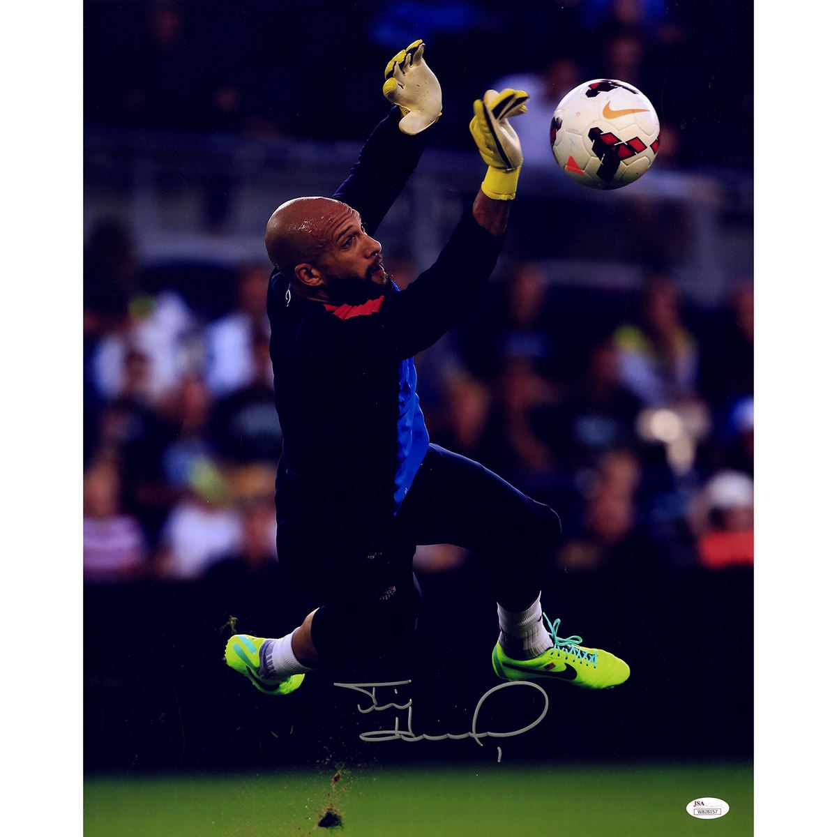 Tim Howard Signed Dive Saving Ball Vertical 16x20 Photo ( JSA)