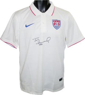 Tim Howard is an American soccer player who plays as a goalkeeper for English club Everton and the United States national team. Howard first represented the United States national team in 2002 and was an unused substitute for the 2006 World Cup. He later established himself as first-choice and started all of the United States' games at the 2010 and 2014 World Cups; the team reached the Round of 16 on both occasions. Tim Howard has hand signed this White Nike Official Authentic Olympic Team USA Soccer Dri-Fit Goalie Jersey (Size Medium) with USA inscription. JSA and Howard Holograms and Certificate of Authenticity.