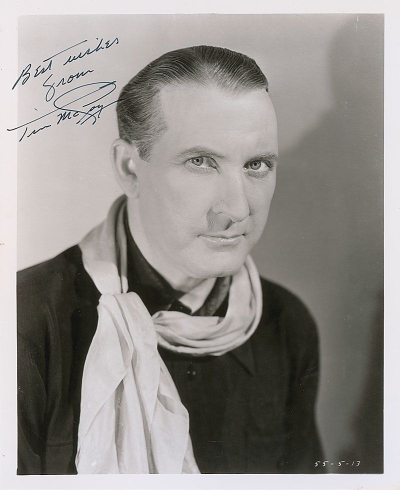 Glossy 8 x 10 portrait of McCoy wearing a scarf, signed in black felt tip, “Best wishes, from Tim McCoy.” In fine condition, with light scattered surface creases.