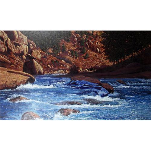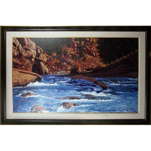 Tim Saska (1935-2006) Oil on Canvas, Riverscape, 36" x 60, signed lower left
