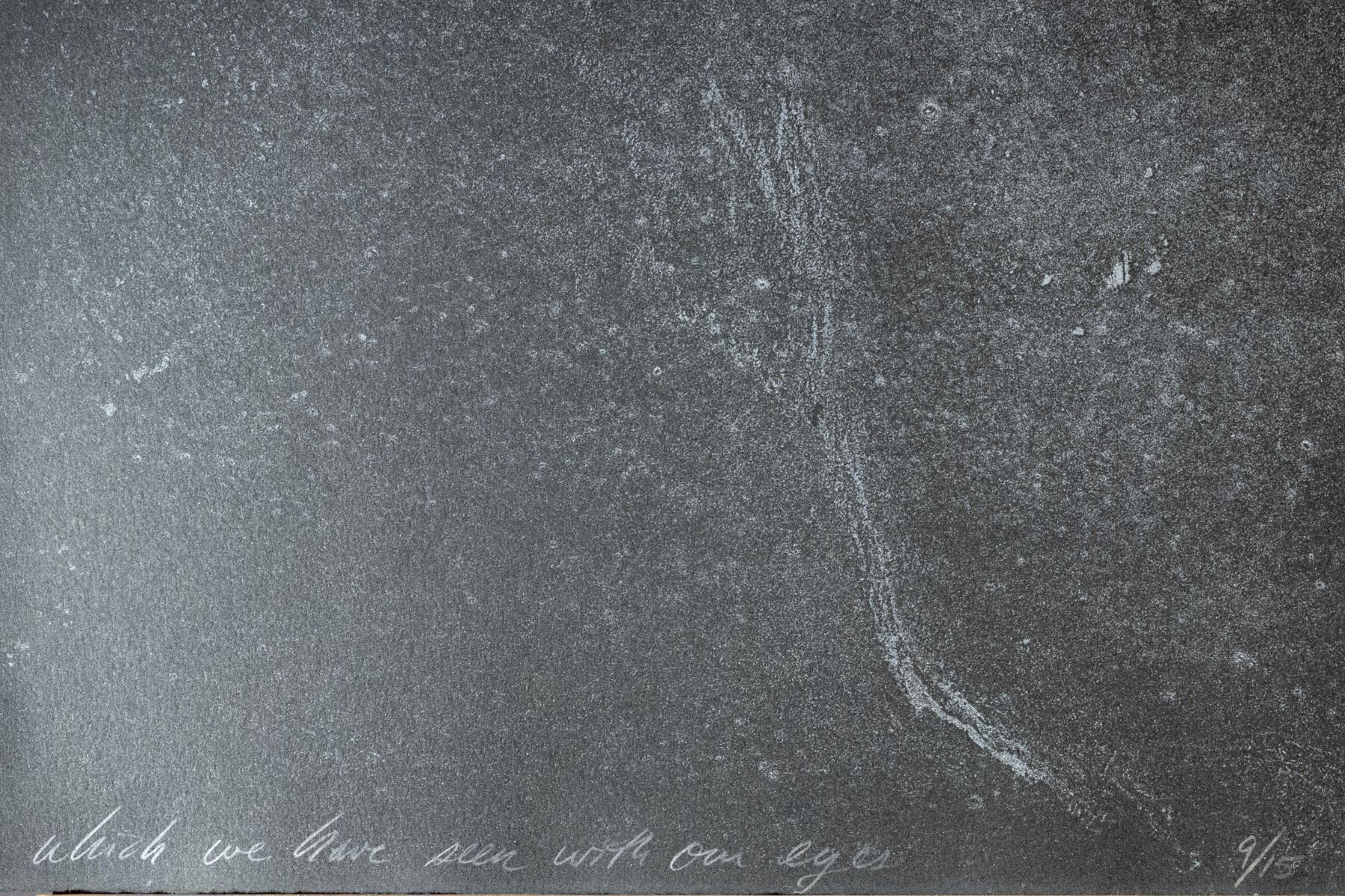 Color lithograph, titled lower left: which we have seen with our eyes, editioned center: 9/15, signed and dated lower right: T. Sheesley '80