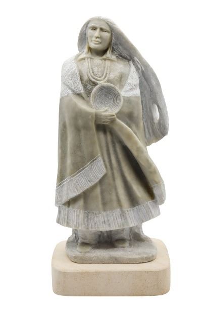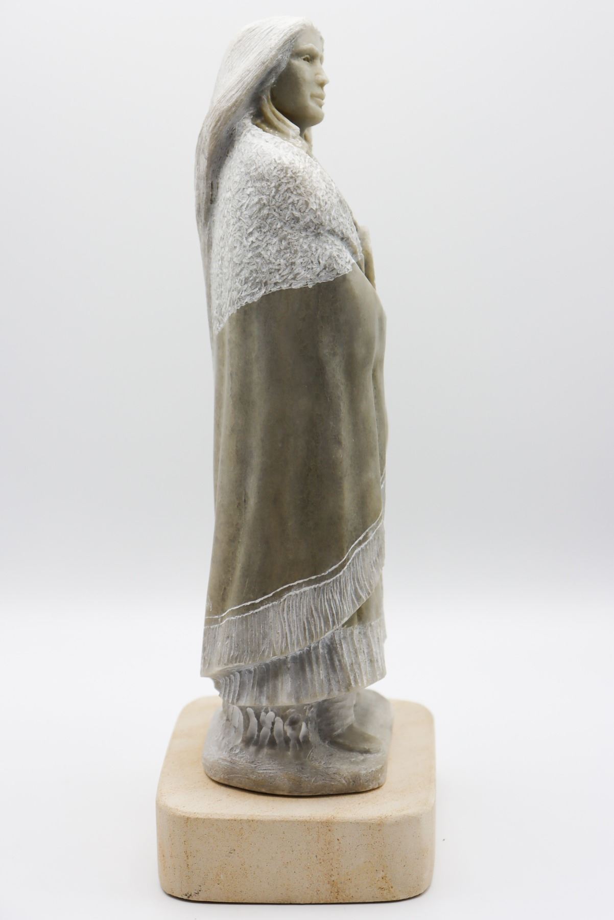 Signed marble sculpture of an American Indian figure. Tim (Timothy) Washburn is a sculptor living in New Mexico/Arizona. He is known for his Native American themed sculpture, hand carved marble, stone, alabaster.