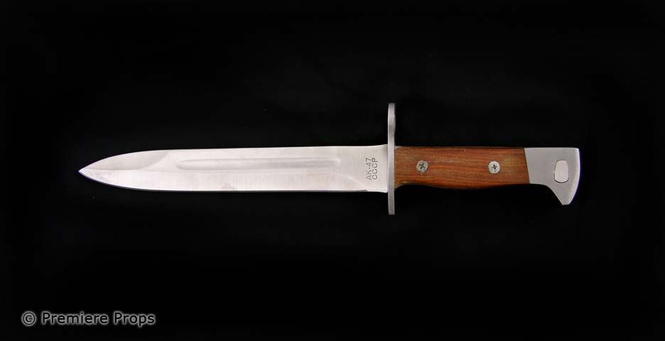 A remarkable item from the terrifying film, this is a knife/bayonet with "AK-47 CCCP" printed on the base of the extremely sharp blade. The knife has a wood handle, and measures approximately 12".