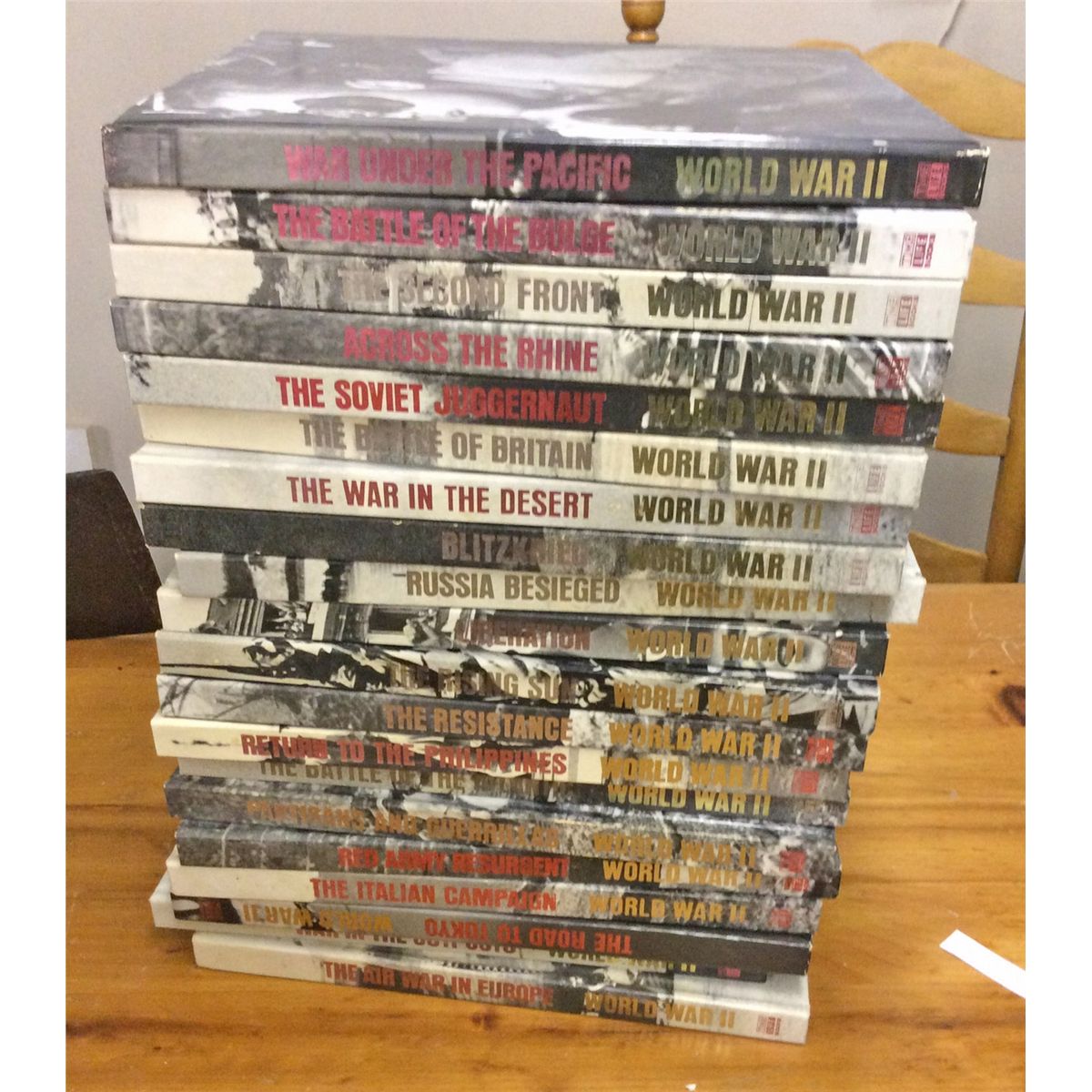 20 Published 1977 Time Life - World War II - Liberation, The Rising Sun, The Resistance, War Under the Pacific, Return to the Philippines, The Battle of the Atlantic, Partisans and Guerrillas, Red Army Resurgent, The Italian Campaign, The Road to Tokyo, War in the Outposts, The War in Europe, The Battle Of Britain, The Soviet Juggernaut, Across the Rhine, The Second Front, The Battle of the Bulge, Russia Besieged Blitzkrieg, The War In the Dessert