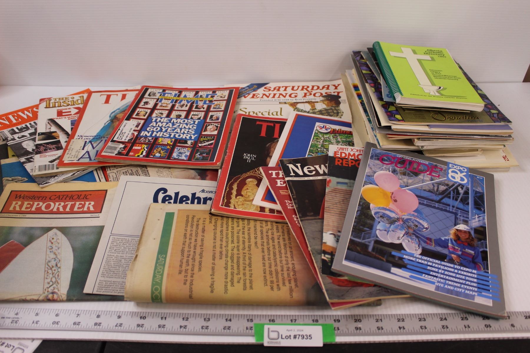 Time Magazines, Edmonton Newspapers from the 80's, Catholic Books, Misc., All in a Tote