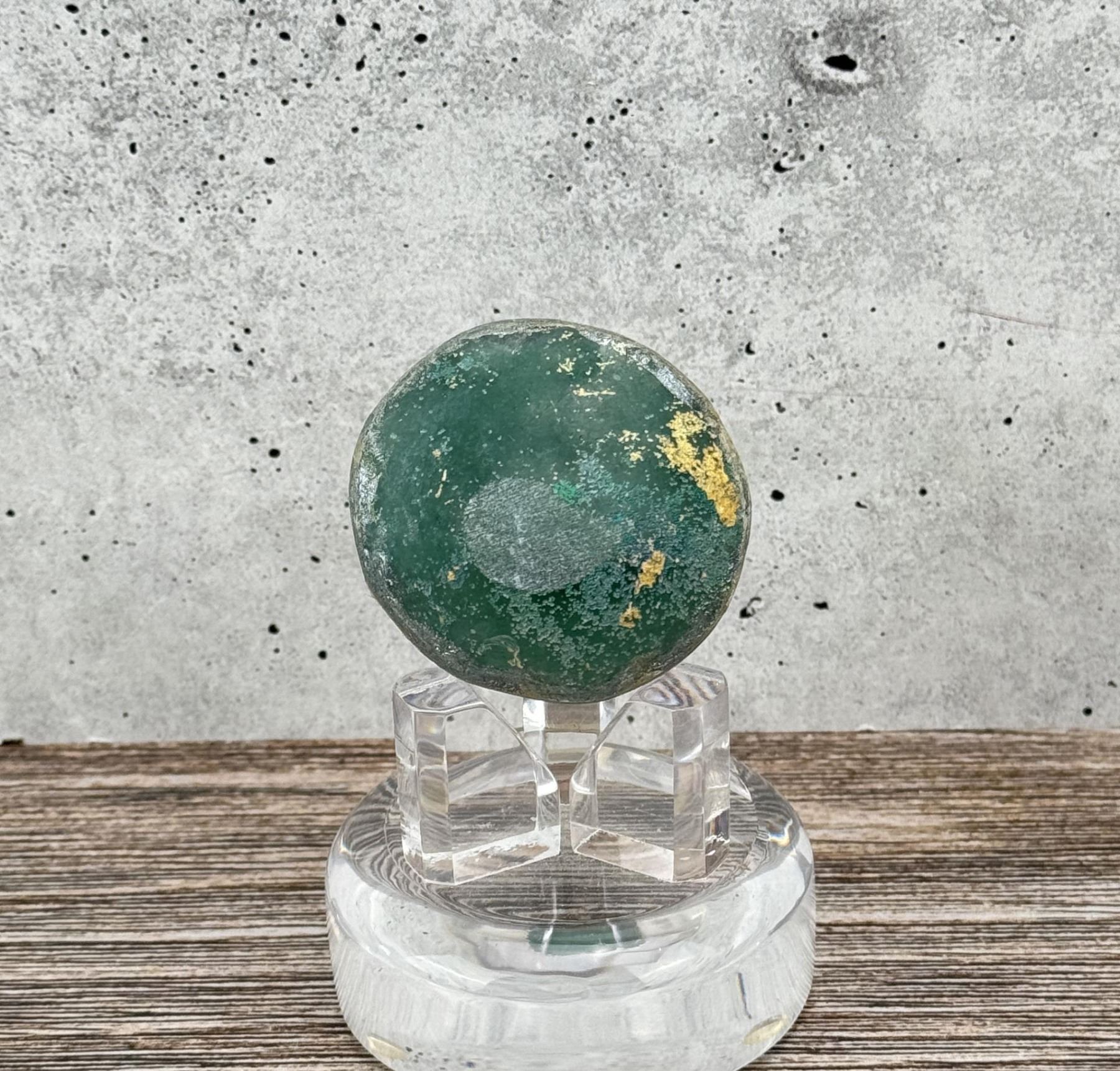 1 1/2" tall by 2" in diameter. 40.28 grams.