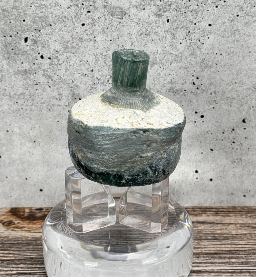 1 7/8" tall by 1 3/4" in diameter. 88.17 grams