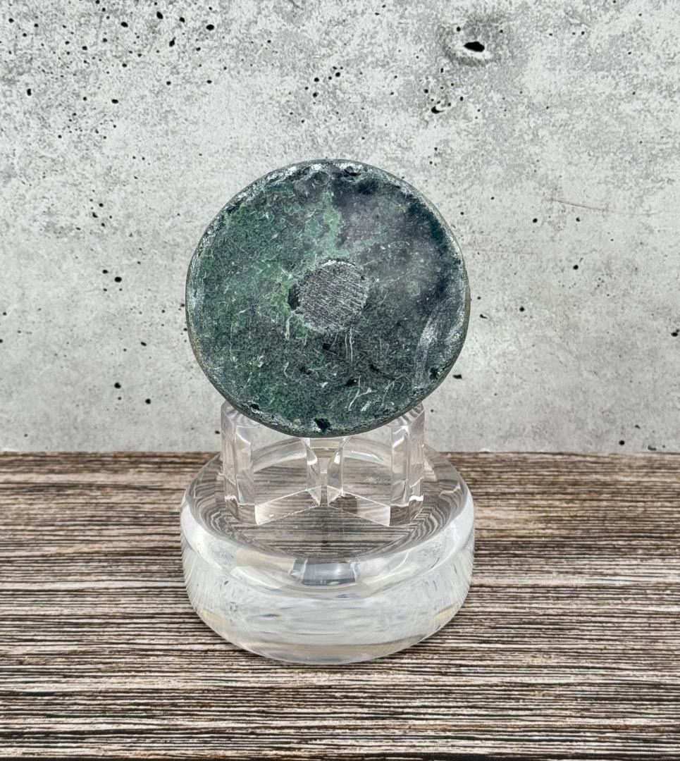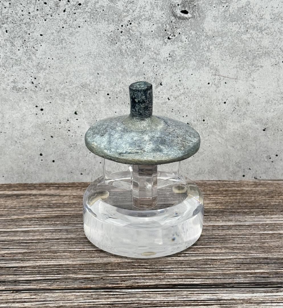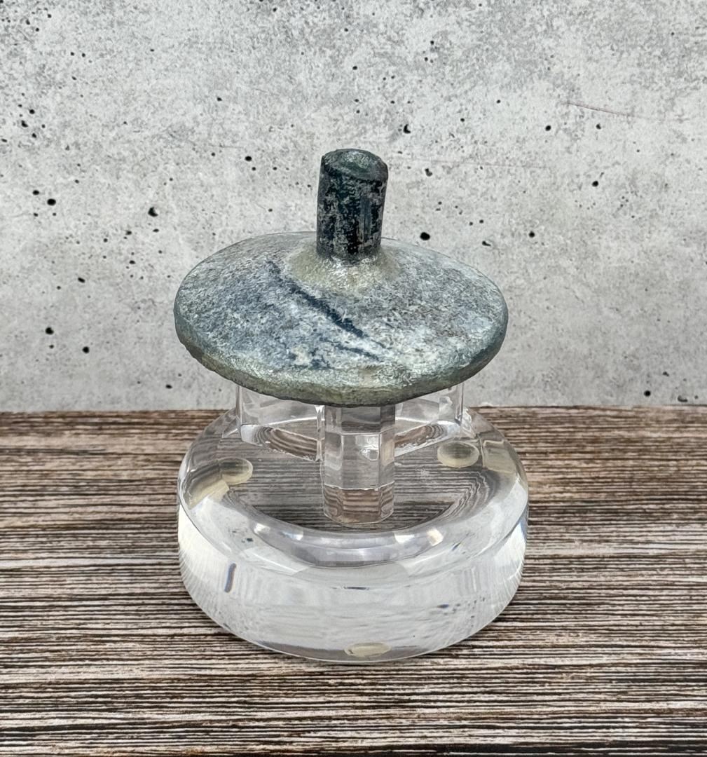 1 1/4" tall by 2 1/4" in diameter. 56.07 grams