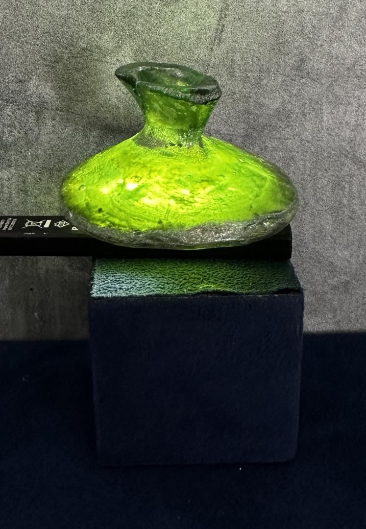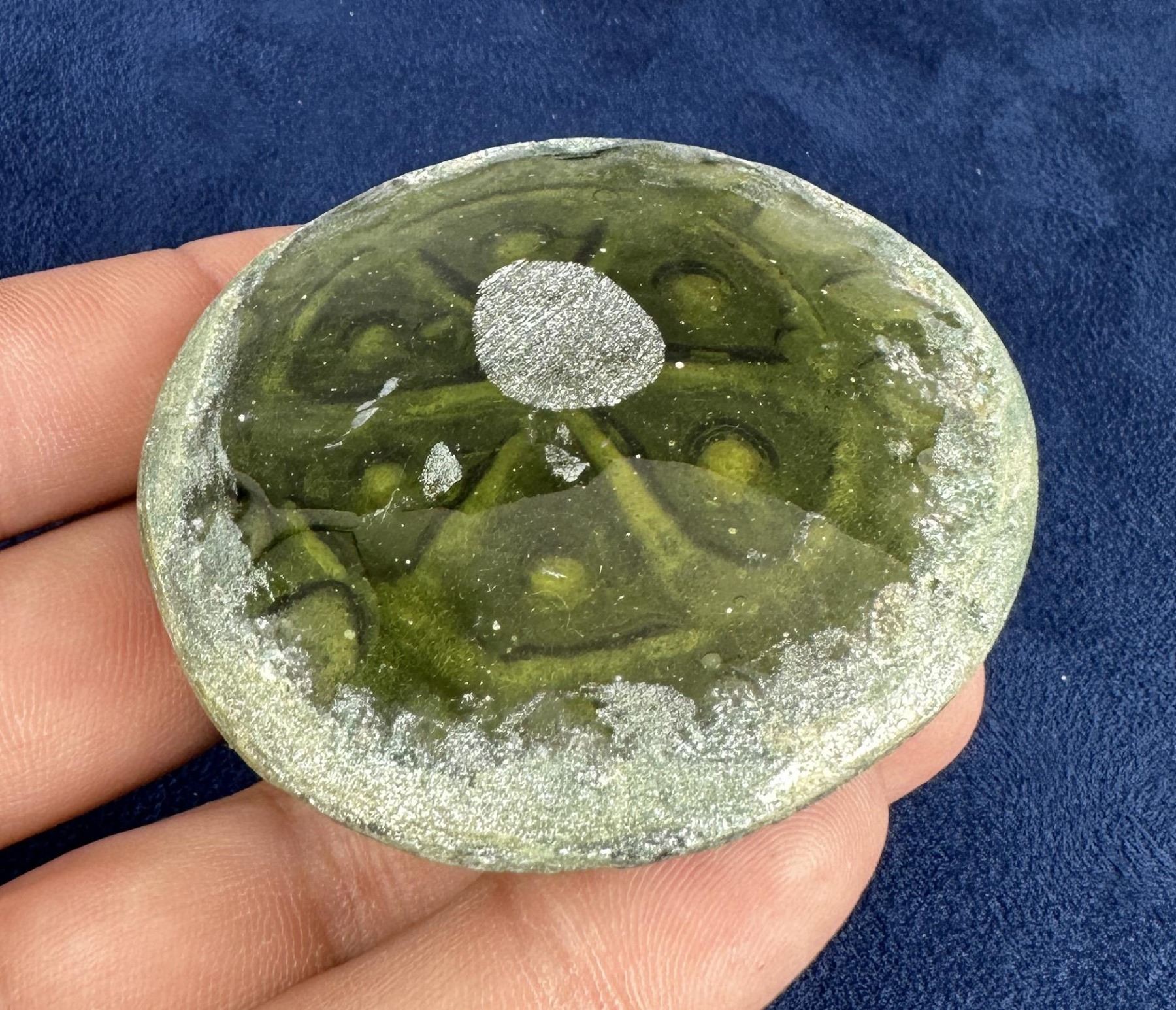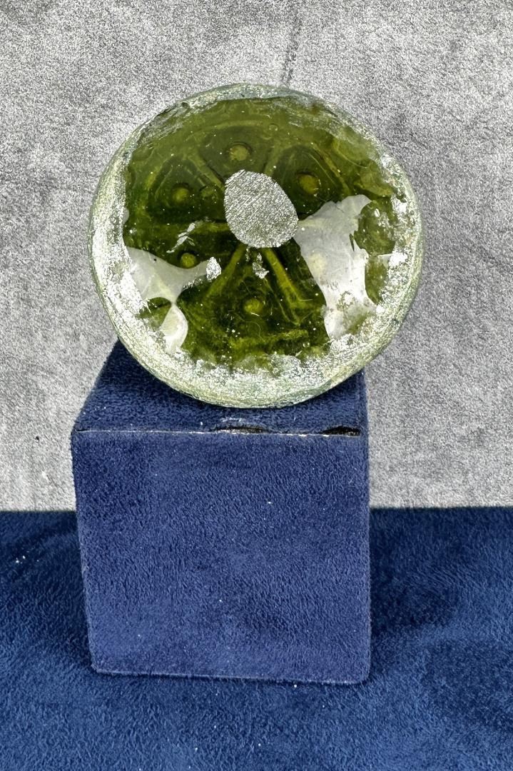 1 1/2" high by 2 1/4" in diameter. 70.2 grams