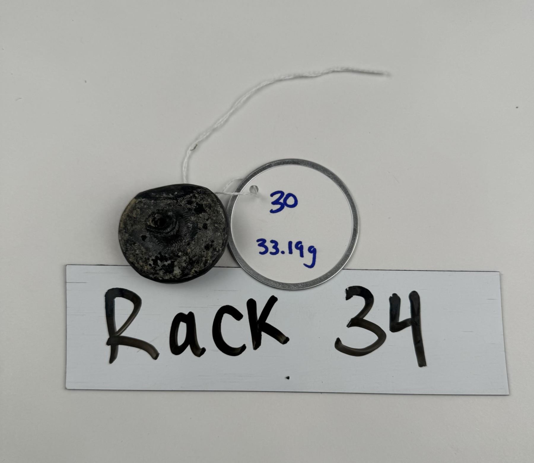 1 1/4" tall by 1 3/4" in diameter. 33.19 grams.