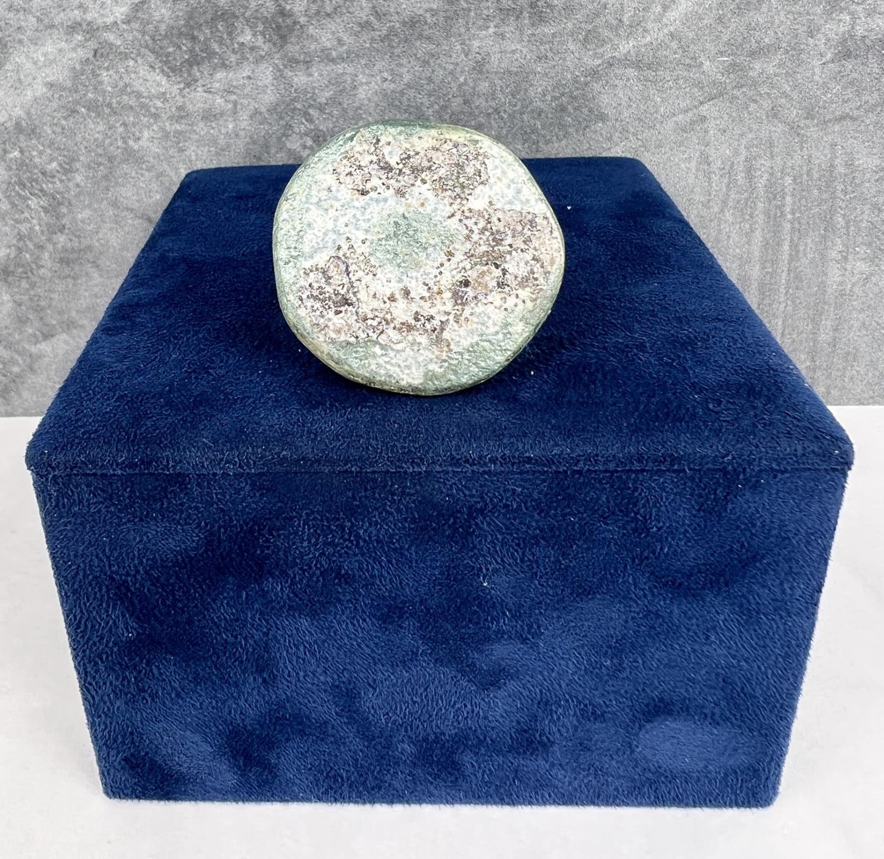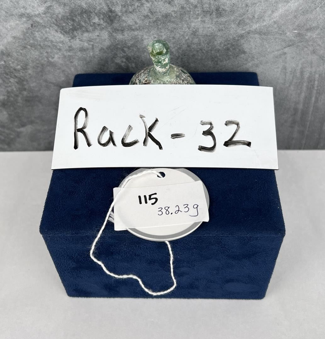1 1/2" tall by 1 3/4" in diameter. 38.23 grams