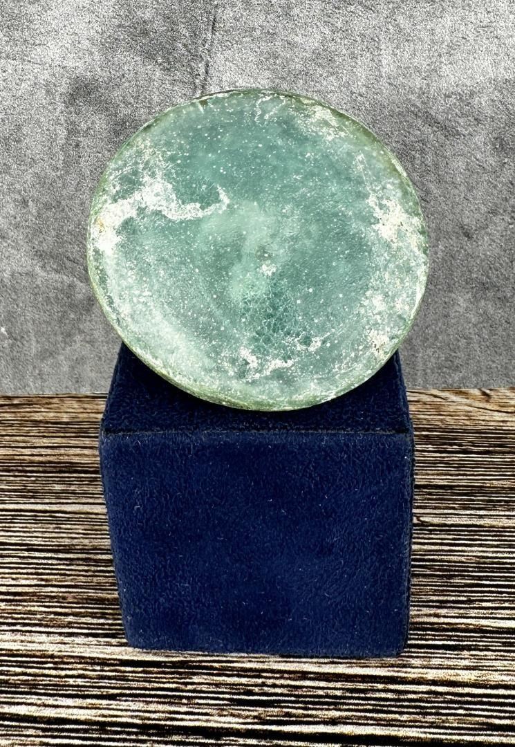 1 1/4" tall by 2 1/4" in diameter. 57.35 grams