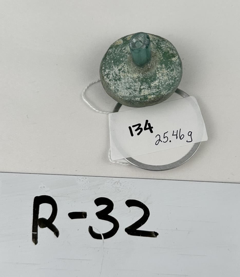 1 1/2" tall by 1 1/2" in diameter. 25.46 grams