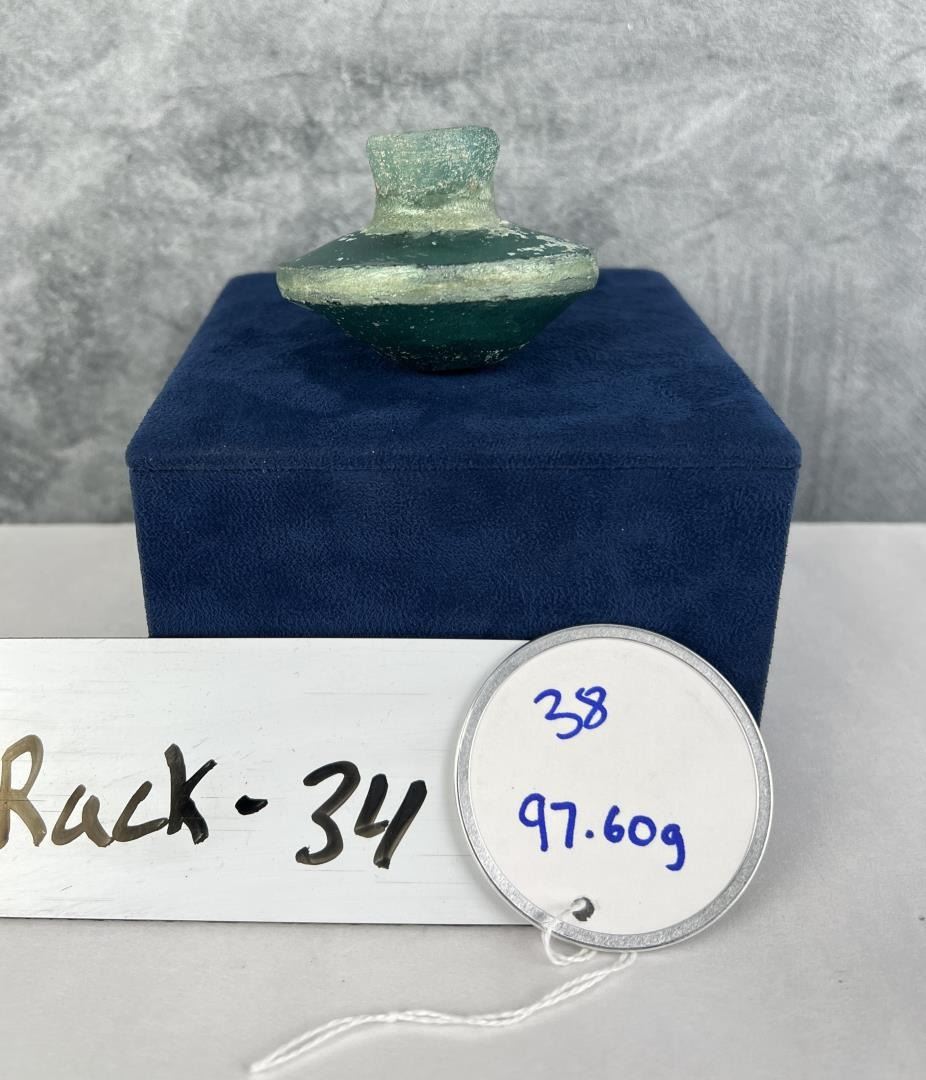1 3/4" tall by 2 1/2" in diameter. 97.60 grams