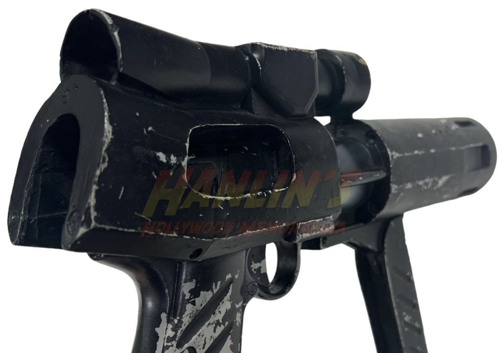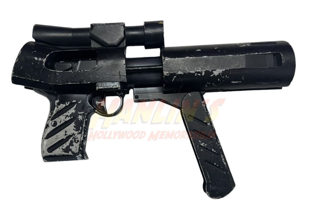 Original Futuristic Weapon used by "Lyle Atwood", played by Jason Schombing in the Peter Hyams directed science fiction action film 'Timecop' (1994). The film stars Jean-Claude Van Damme as Max Walker, a police officer in 1994 and later a U.S. federal agent in 2004, when time travel has been made possible. It also stars Ron Silver as a corrupt politician and Mia Sara as Melissa Walker, the agent's wife. The story follows Walker's life as he fights time-travel crime and investigates the politician's plans.