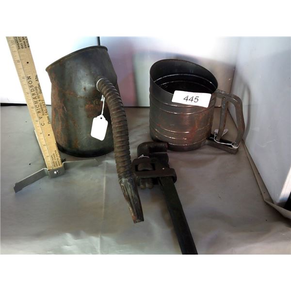Vintage oil cans, pipe wrench445 - Vintage oil cans, pipe wrench