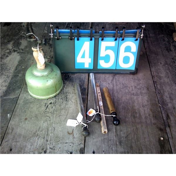 Vintage lantern, 3 small  Coleman  hand pumps456 - Vintage lantern, 3 small Coleman hand pumps