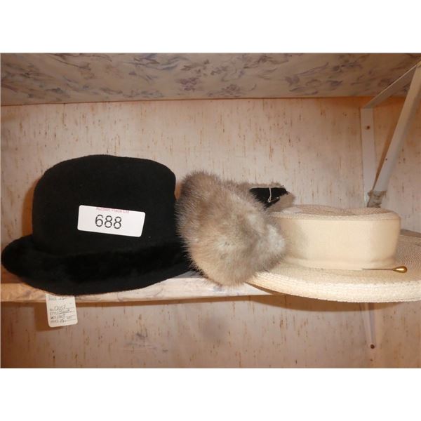 2 Vintage hats, fur scarf688 - 2 Vintage hats, fur scarf