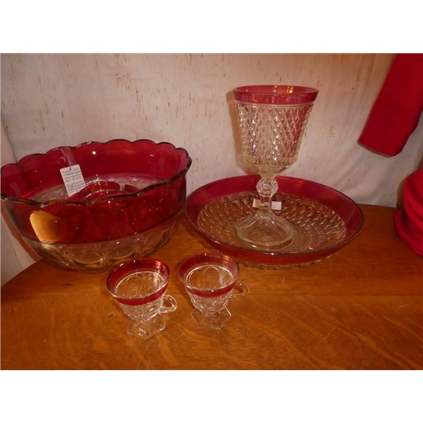 Cranberyy  glass, Punch Bowl Set, Plate, Bowl,691 - Cranberyy glass, Punch Bowl Set, Plate, Bowl,