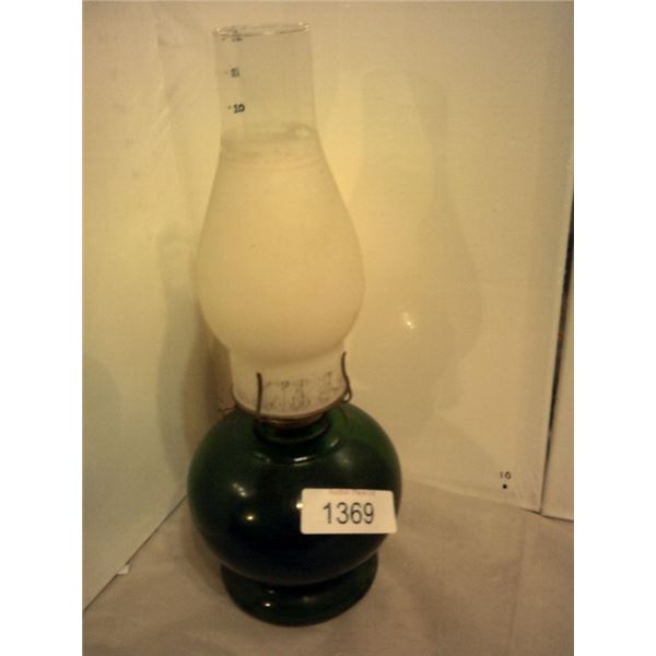 Vintage Emerald base oil lamp with frosted globe1369 - Vintage Emerald base oil lamp with frosted globe