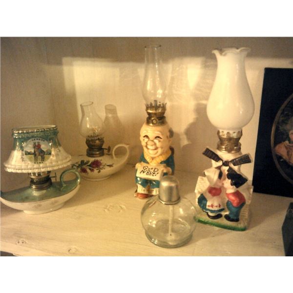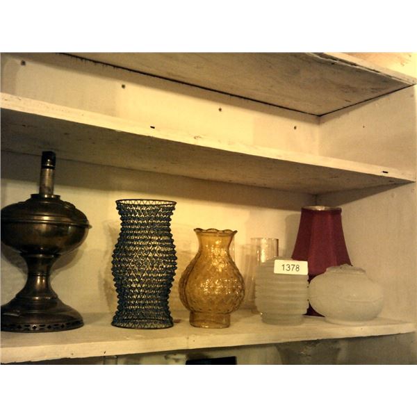 Oil Lamp, globes and candle holders1388 - Oil Lamp, globes and candle holders