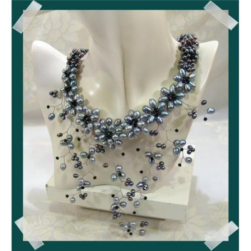 I believe everyone adores the timeless elegance of SMOKEY GRAY fresh water pearls complimented with the firey presence of Swarovski crystal handwoven in a one of a kind design! This fabulous necklace and complimentary clip earrings would complete the most decatant presentation. The necklace could be gently moulded to fit any individual purchaser with an adjustable length of approximately 16" to 18". The piece boasts an impressive gram weight of 150......