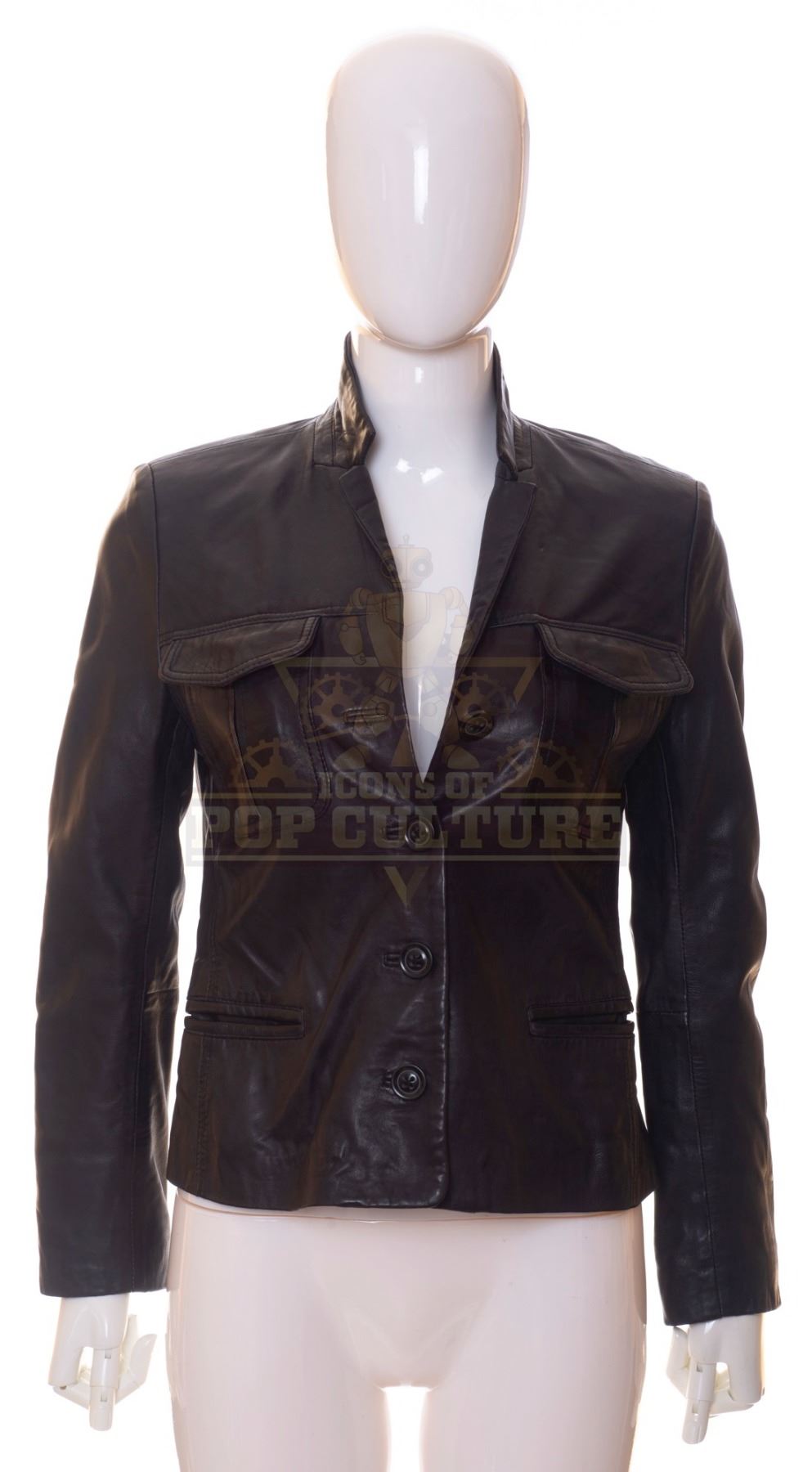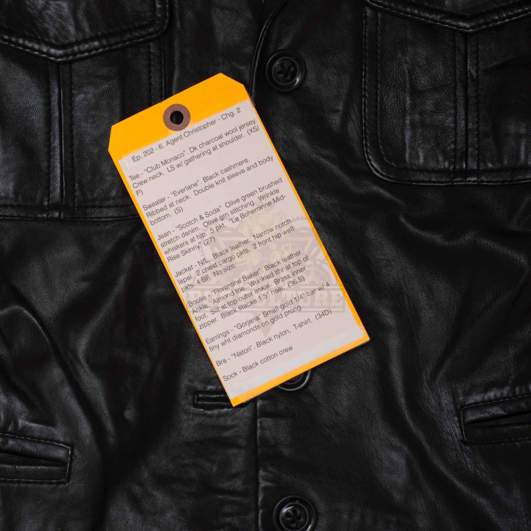 This jacket was acquired by the production for use by Sakina Jaffrey as “Denise Christopher” in the season two episode titled “The Darlington 500”. The black leather jacket features two chest and two hip pockets. Included with the jacket is a production used costume tag that details the entire outfit, episode title, change number and scene numbers used.