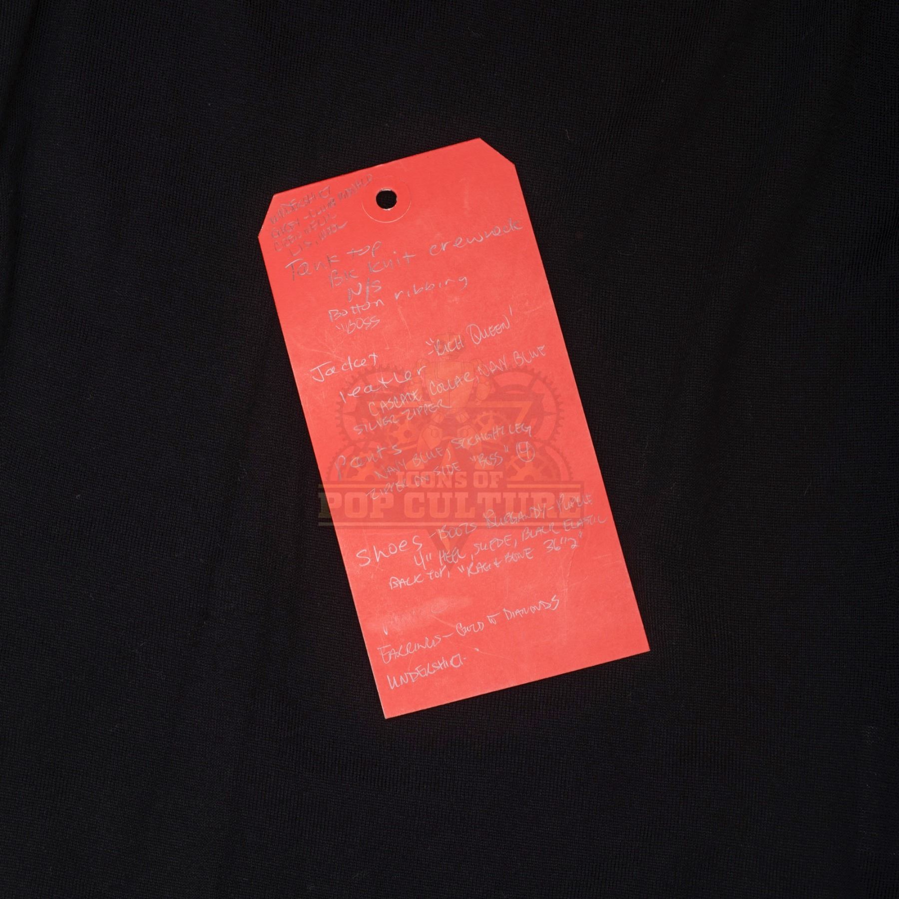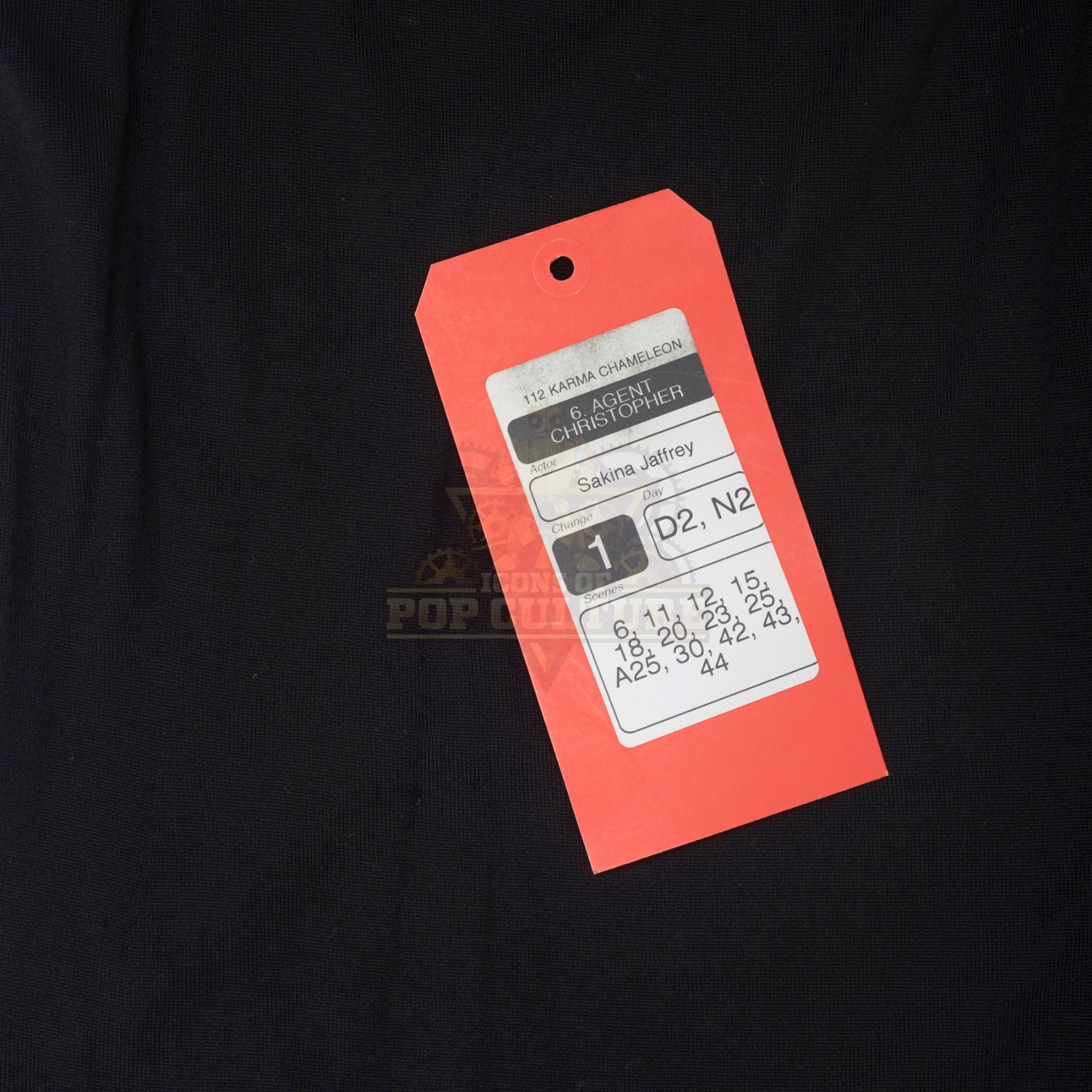 This outfit was acquired by the production for use by Sakina Jaffrey as “Denise Christopher” in the season one episode titled “Karma Chameleon”. The outfit consists of a black tank top and a pair of black pants. Included with the outfit is a production used costume tag that details the entire outfit, episode title, change number and scene numbers used.