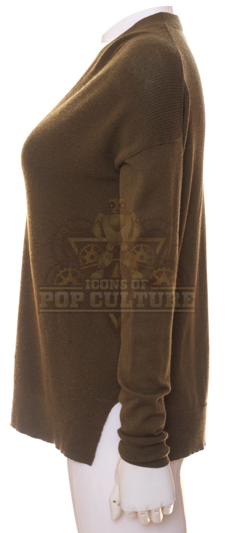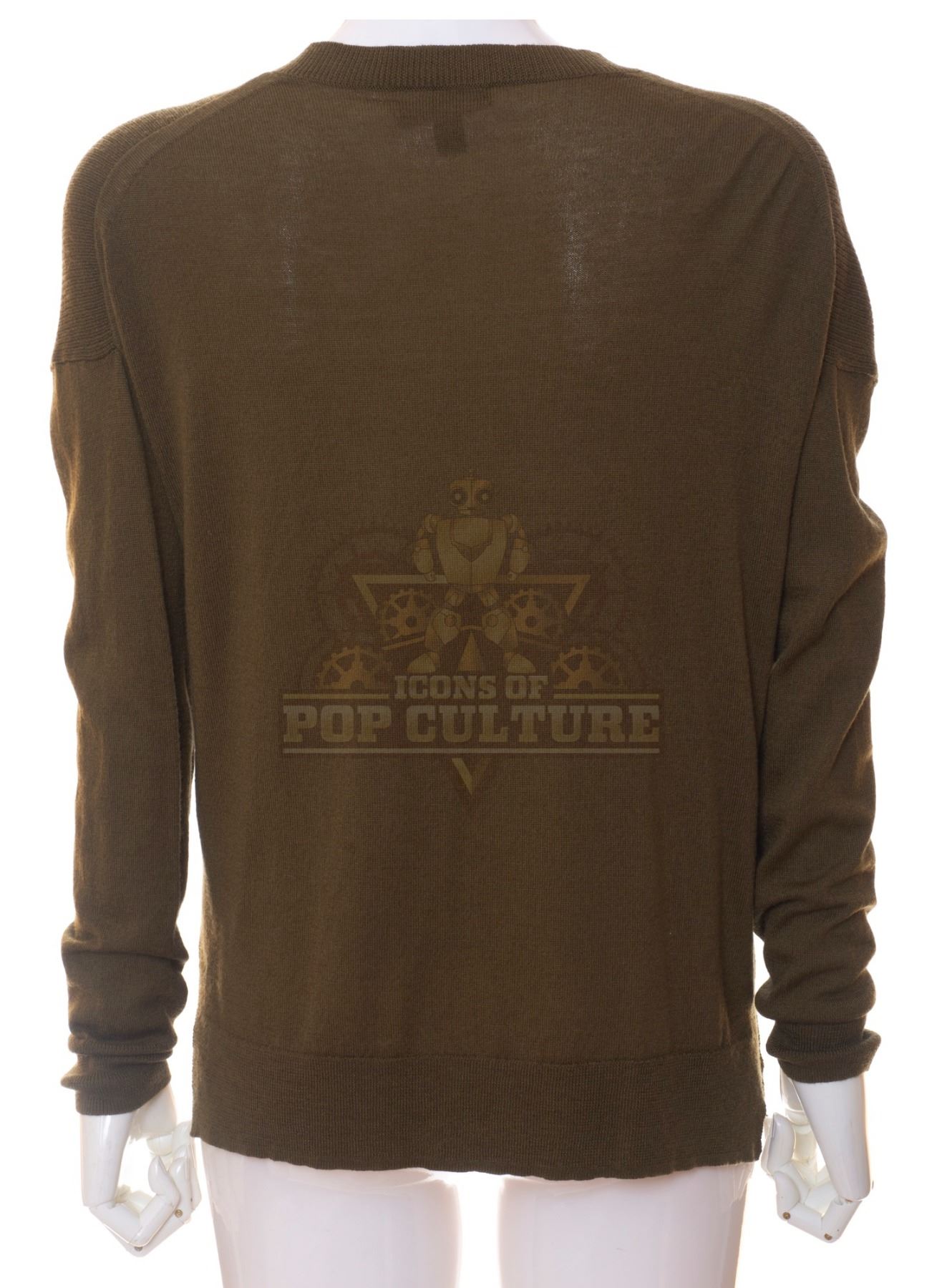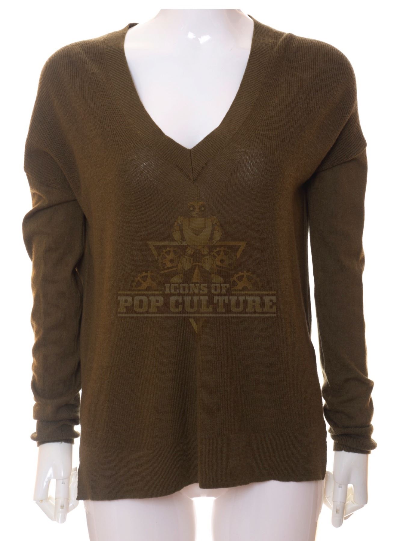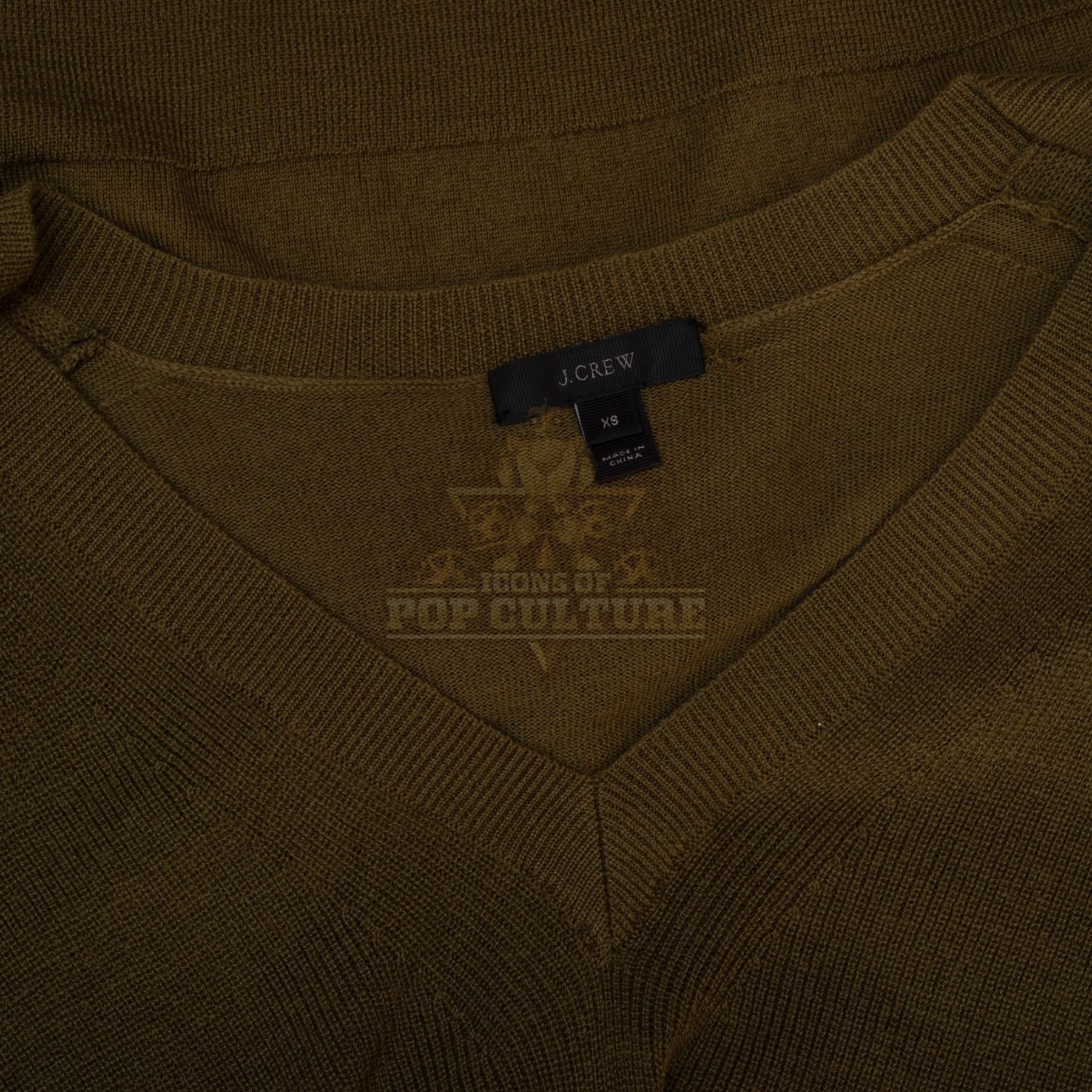 This sweater was acquired by the production for use by Annie Wersching as “Emma Whitmore” in the season one episode titled “The Red Scare”. The dark green sweater features a V-neck and ribbed neckline and cuffs.