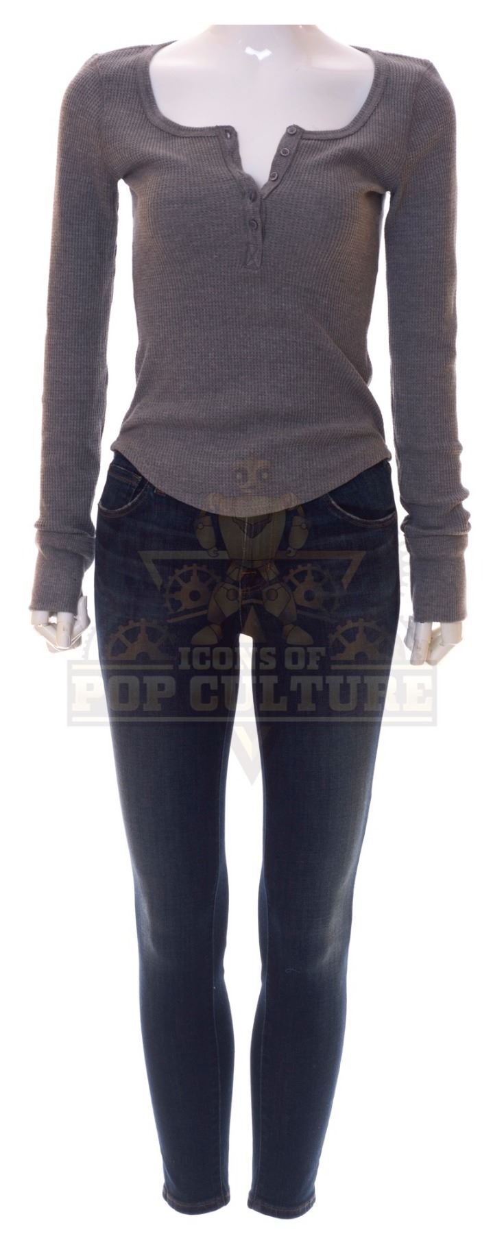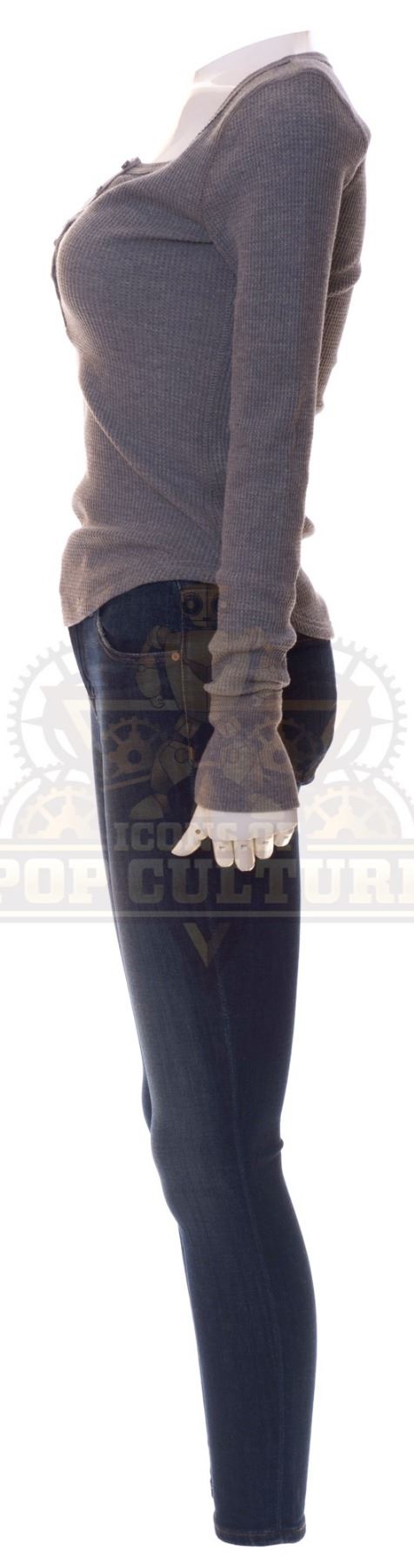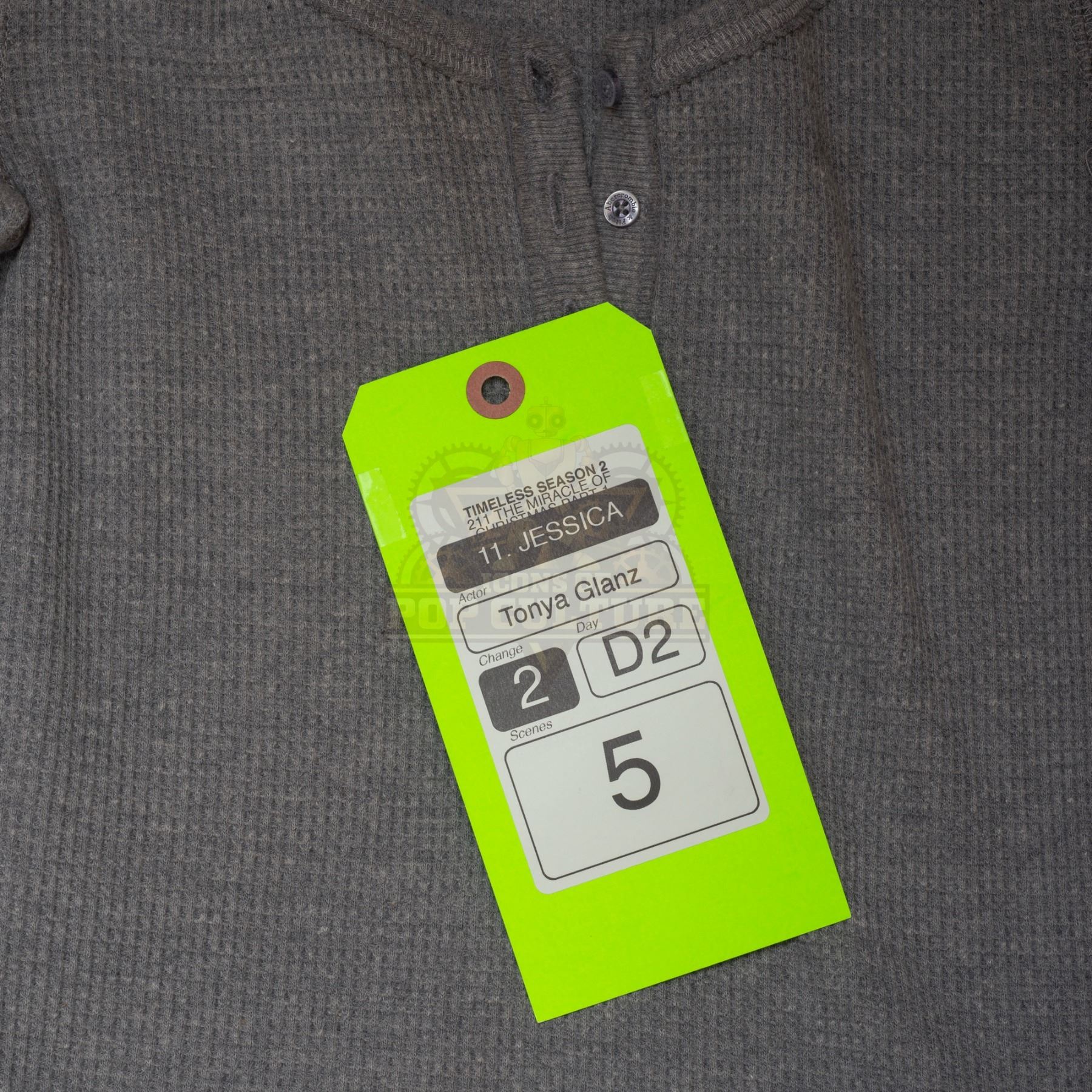 This outfit was acquired by the production for use by Tonya Glanz as “Jessica” in the season two episode titled “The Miracle of Christmas Part I”. The outfit consists of a grey long sleeve shirt and a pair of skinny jeans. Included with the outfit is a production used costume tag that details the entire outfit, episode title, change number and scene numbers used.