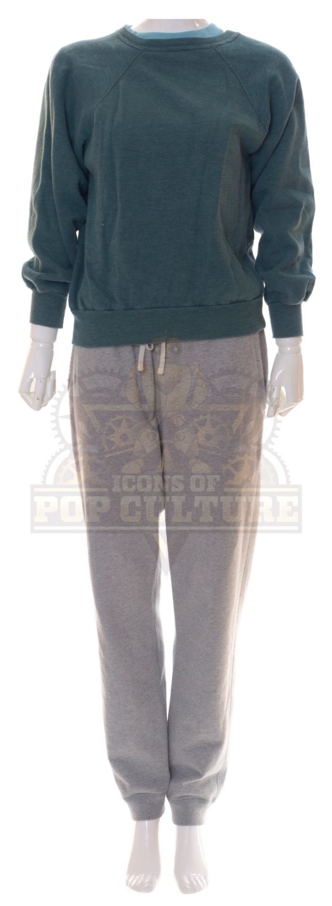 This outfit was acquired by the production for use by Abigail Spencer as “Lucy Preston” in the season two episode titled “The War to End All Wars”. The outfit consists of a green sweatshirt, sleeveless t-shirt with “Always Cool” graphic on the chest and a pair of gray sweatpants. Included with the outfit is a production used costume tag that details the entire outfit, episode title, change number and scene numbers used.