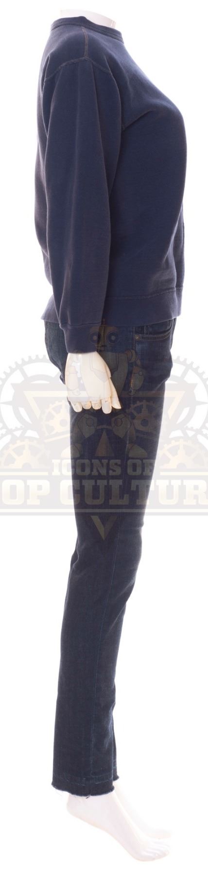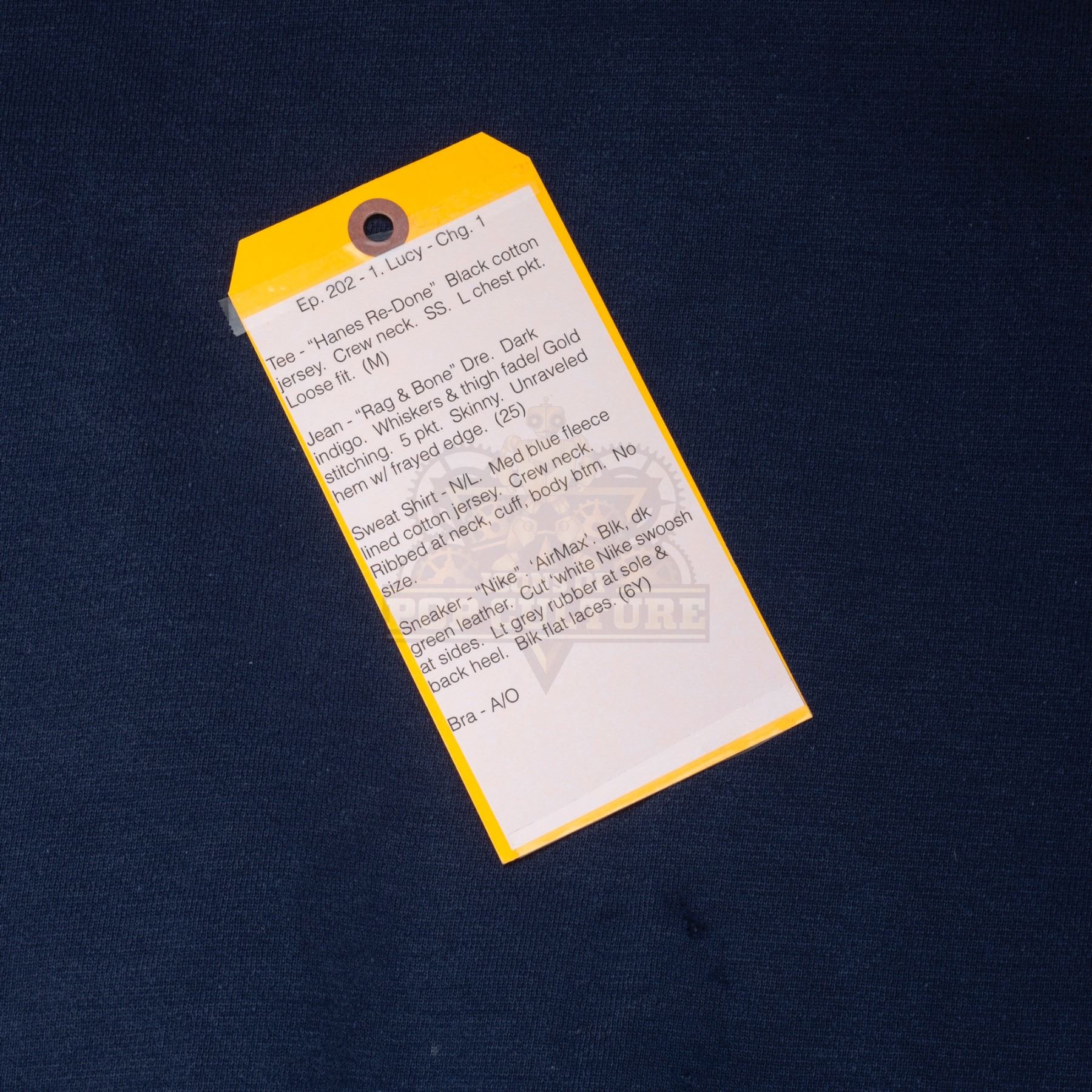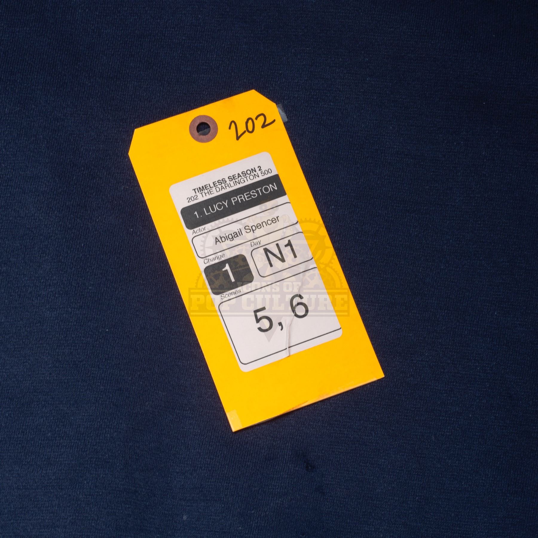 This outfit was acquired by the production for use by Abigail Spencer as “Lucy Preston” in the season two episode titled “The Darlington 500”. The outfit consists of a dark blue sweatshirt and a pair of “Rag & Bone” denim jeans. Included with the outfit is a production used costume tag that details the entire outfit, episode title, change number and scene numbers used.