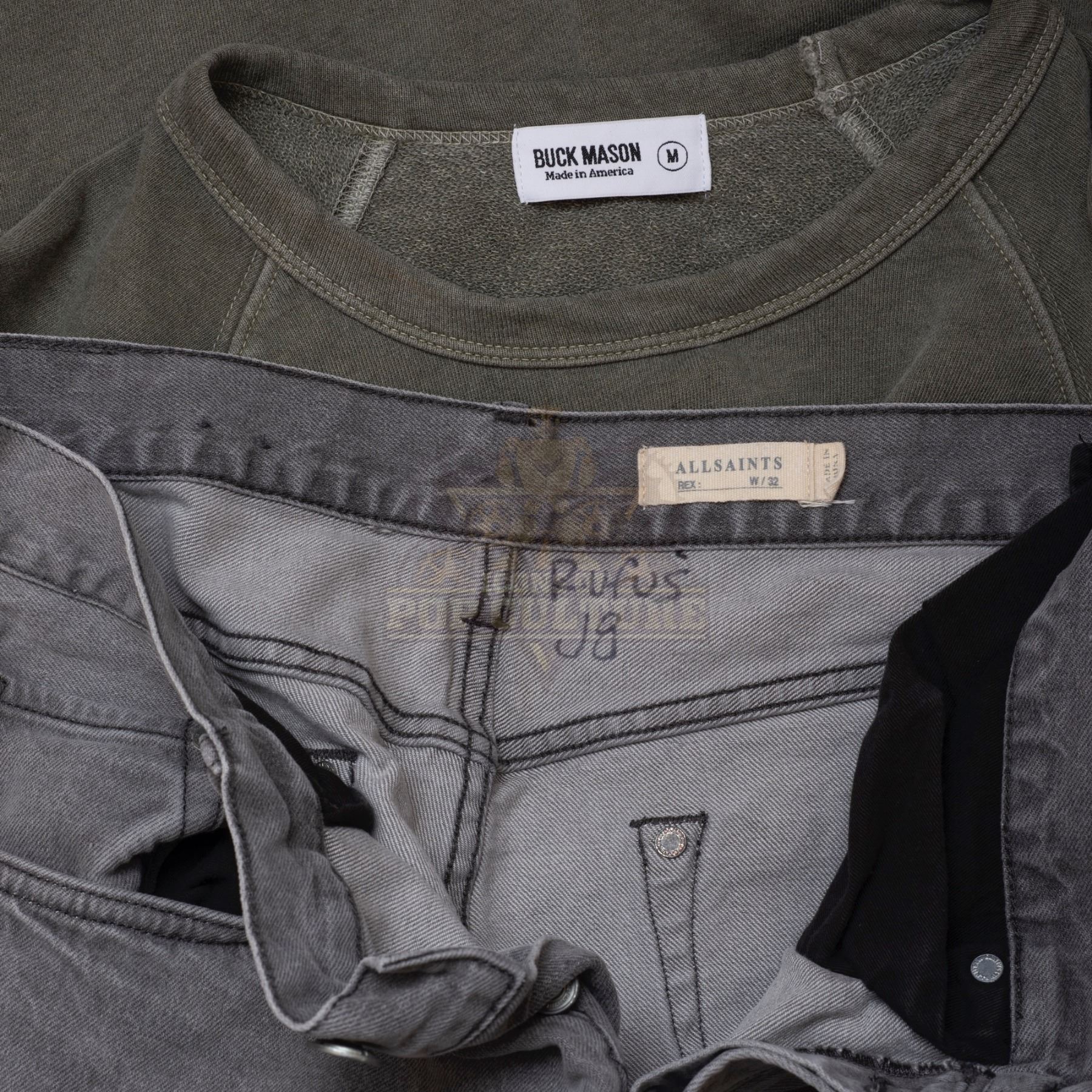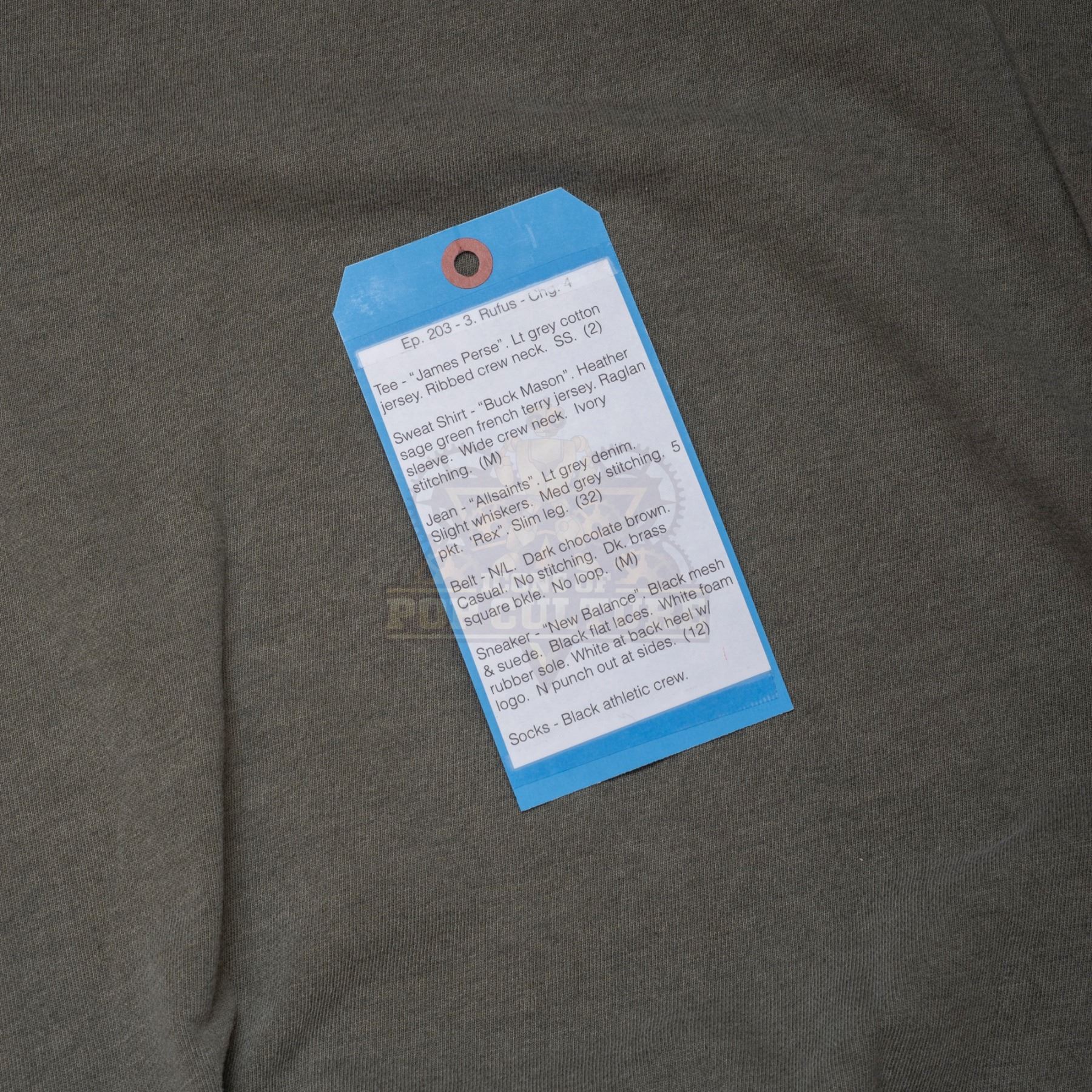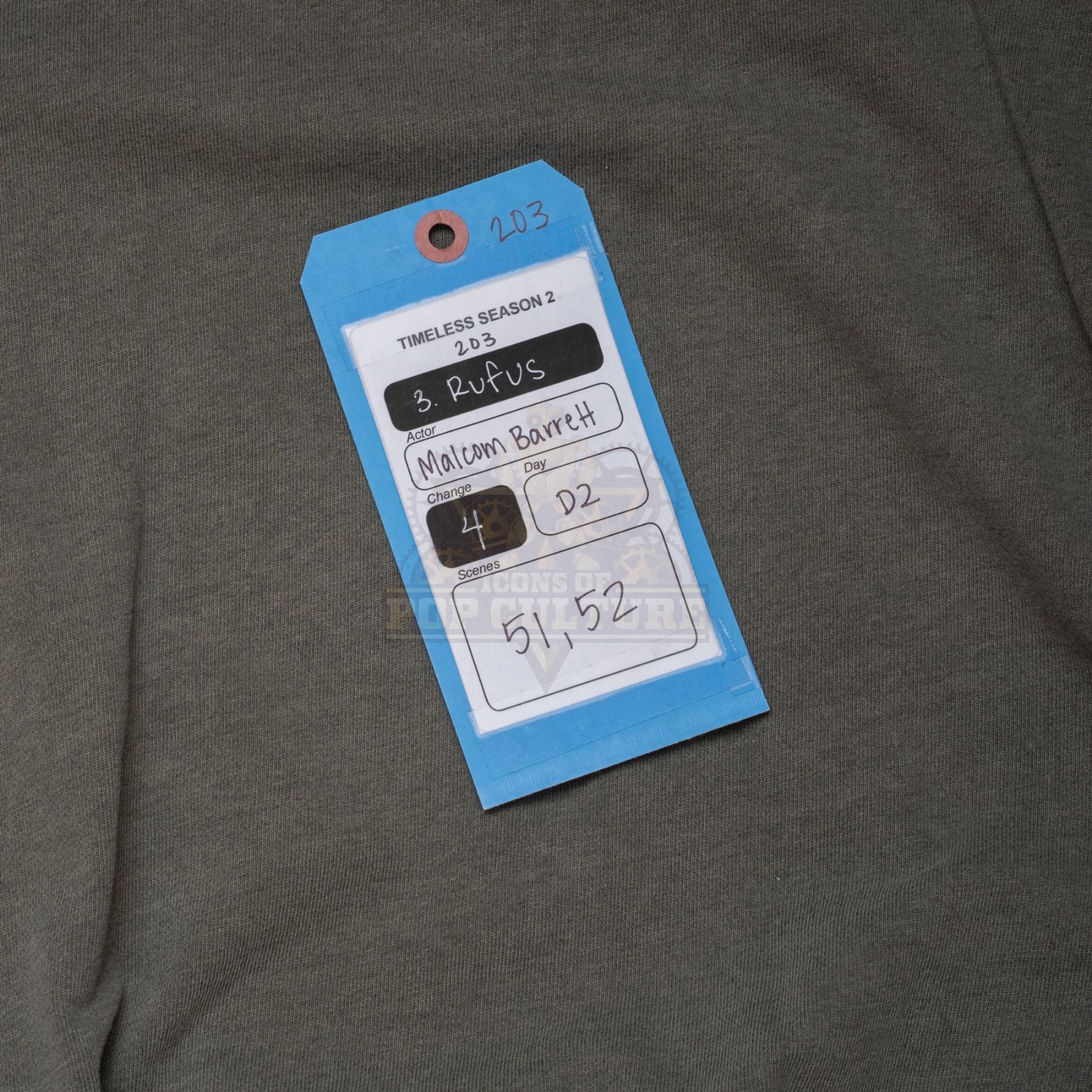 This outfit was acquired by the production for use by Malcolm Barrett as “Rufus Carlin” in the season two episode titled “Hollywoodland”. The outfit consists of a green sweatshirt, a pair of grey denim jeans and a pair of black sneakers. Included with the outfit is a production used costume tag that details the entire outfit, episode title, change number and scene numbers used.