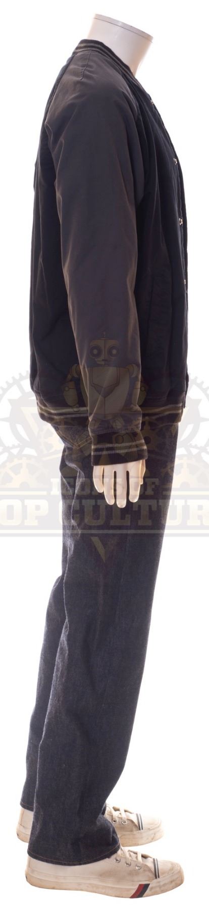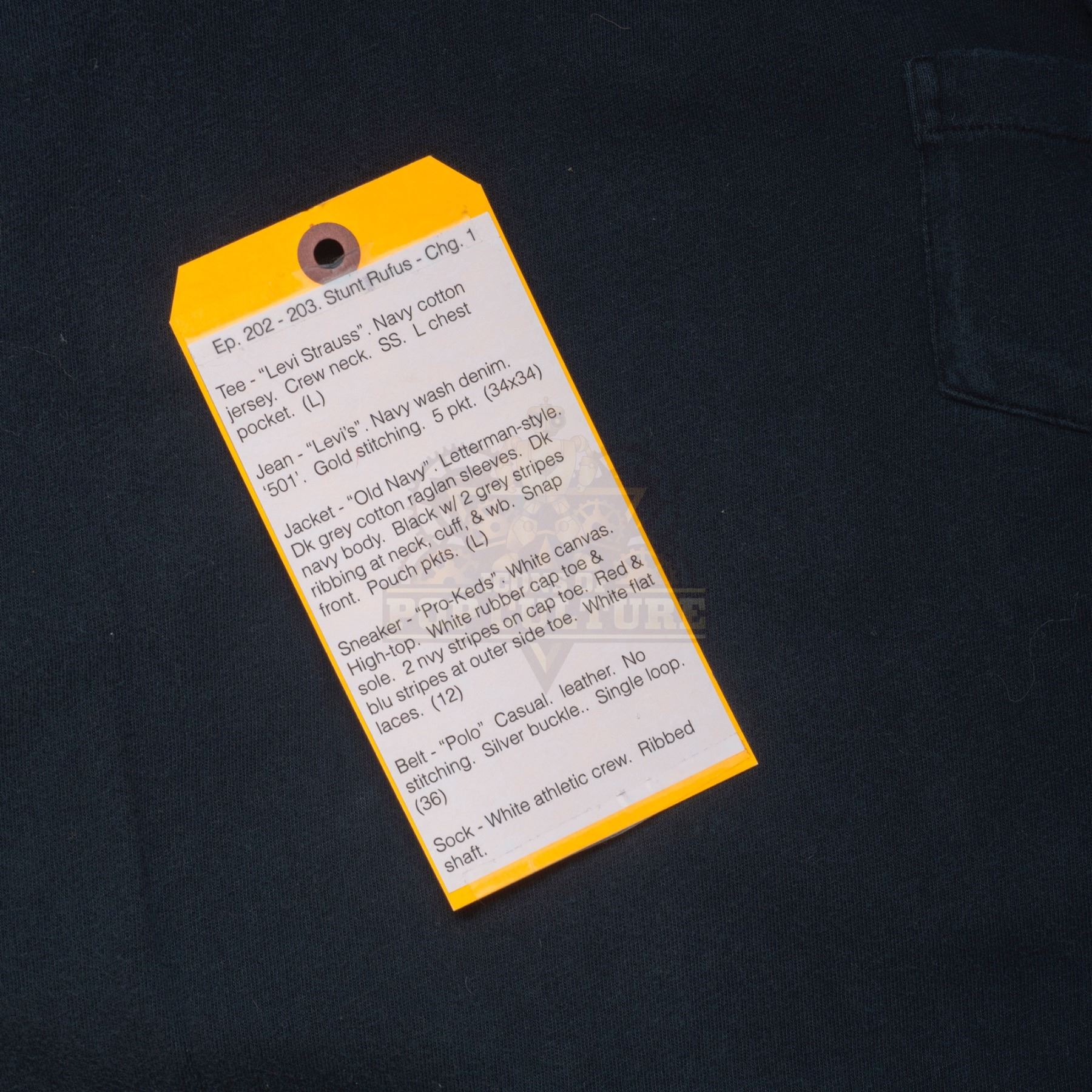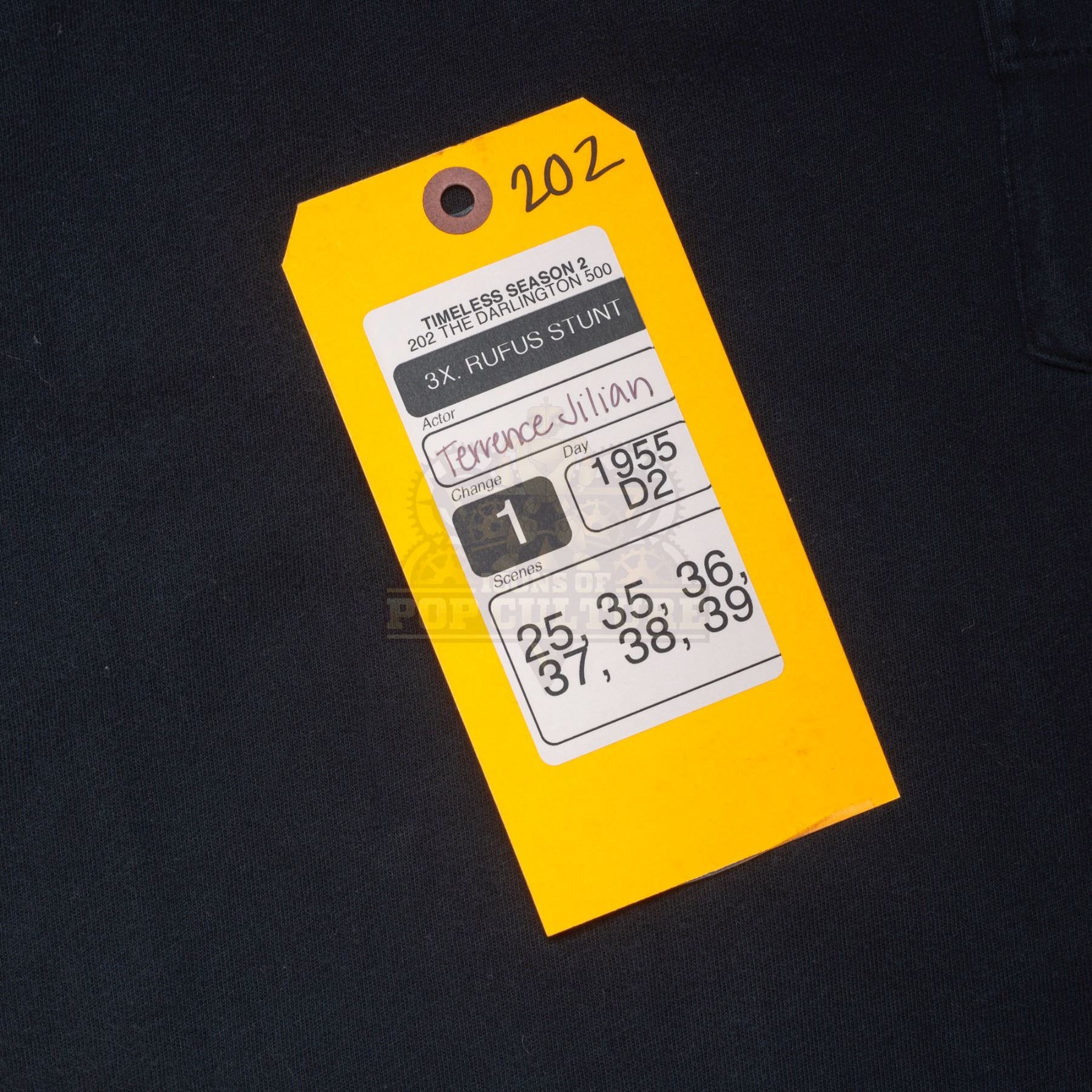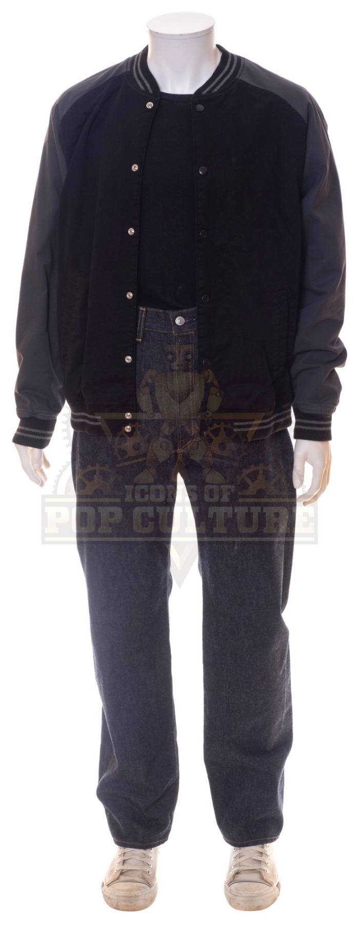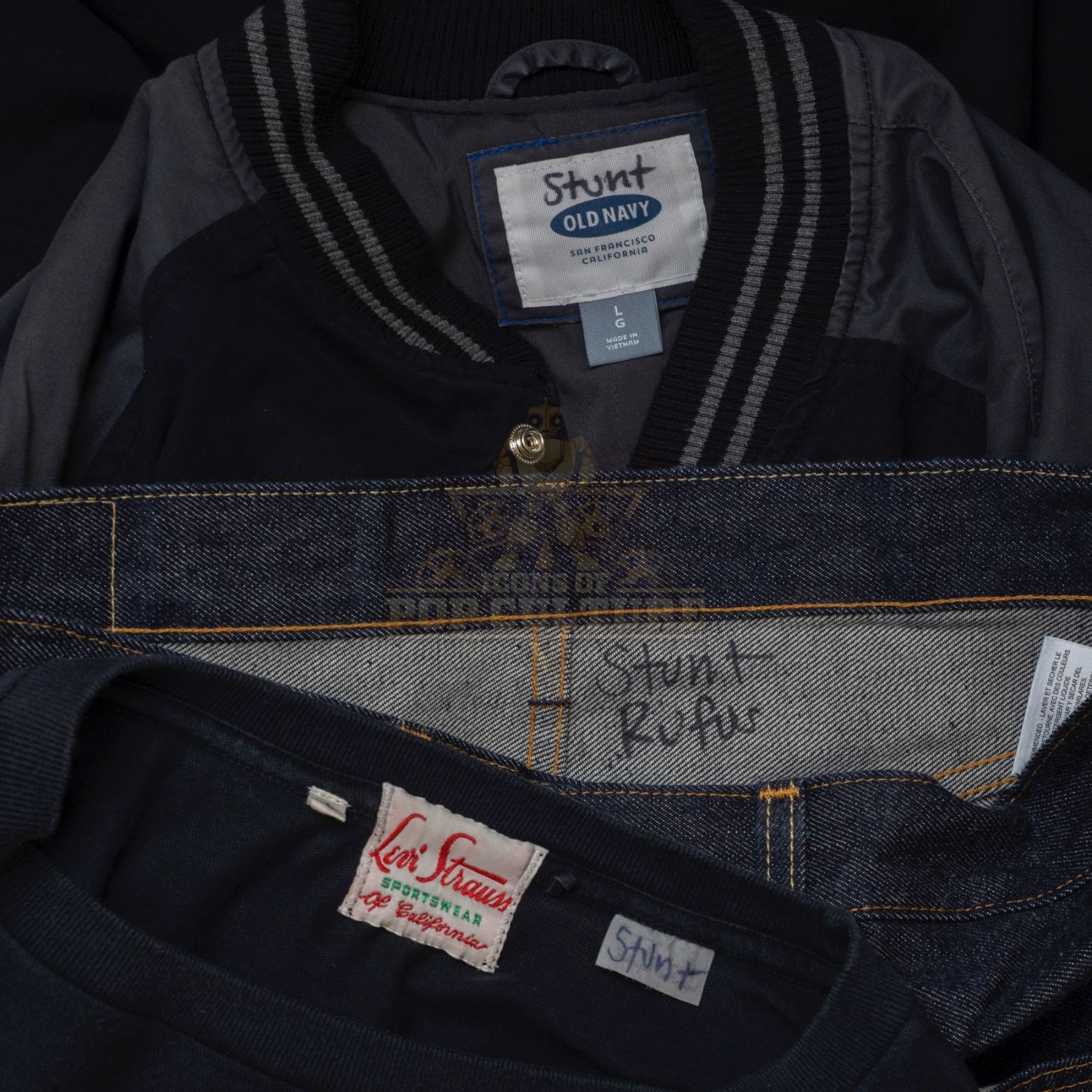This outfit was acquired by the production for use by Malcolm Barrett’s stunt man as “Rufus Carlin” in the season two episode titled “The Darlington 500”. The outfit consists of a letterman style jacket, black t-shirt, a pair of denim jeans and a pair of white high-top sneakers. Included with the outfit is a production used costume tag that details the entire outfit, episode title, change number and scene numbers used.